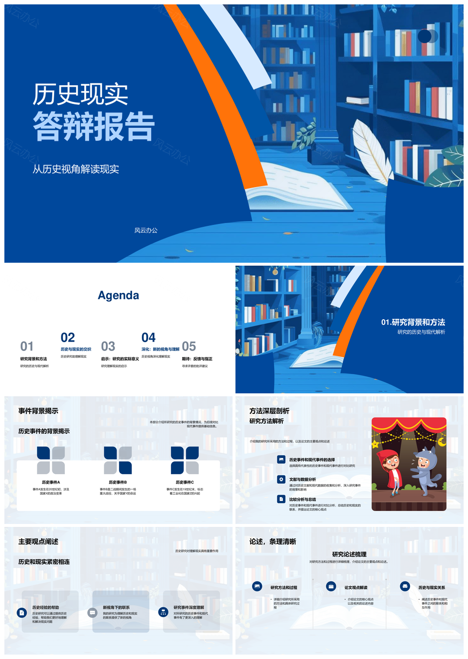 风云办公提供的历史研究现实应用学术答辩PPT模板,下载格式为pptx,一共24页,作品中文字及图均可以修改和编辑,图片更改请在作品中右键图片并更换,文字修改请直接点击文字进行修改。