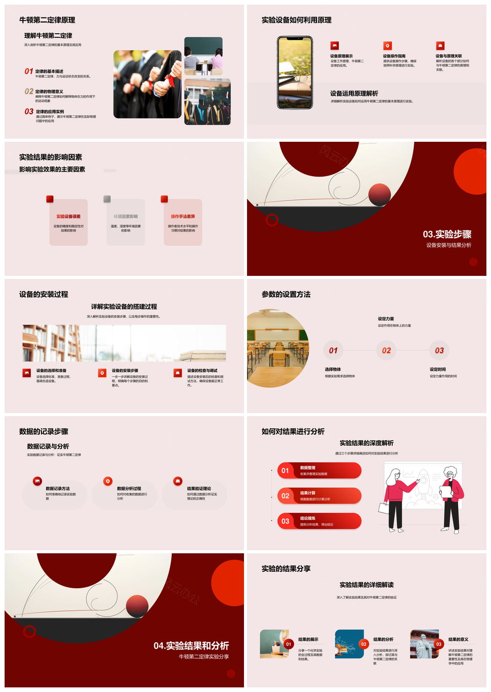 风云办公提供的牛顿第二定律实验原理步骤结果分析PPT模板,下载格式为pptx,一共24页,作品中文字及图均可以修改和编辑,图片更改请在作品中右键图片并更换,文字修改请直接点击文字进行修改。