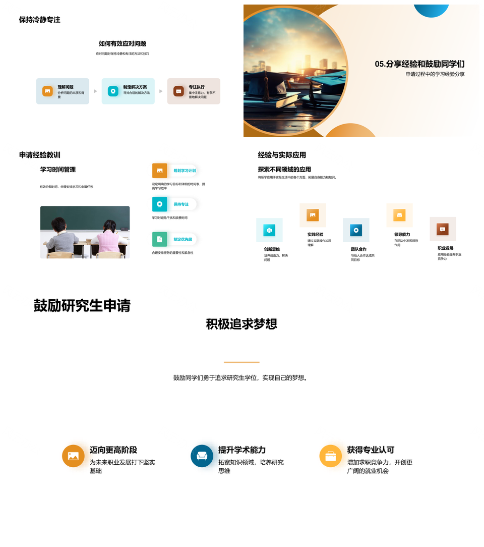 研究生申请策略挑战成长经验关键决策PPT模板