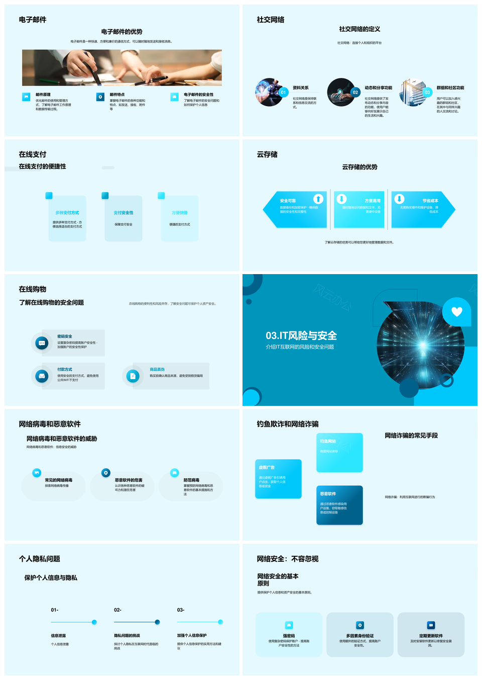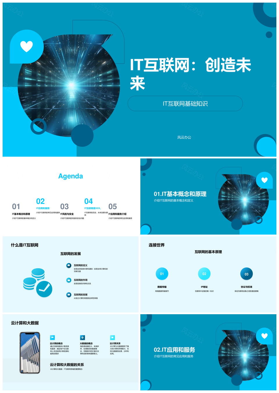 风云办公提供的IT互联网基础原理与发展科普讲座PPT模板,下载格式为pptx,一共29页,作品中文字及图均可以修改和编辑,图片更改请在作品中右键图片并更换,文字修改请直接点击文字进行修改。
