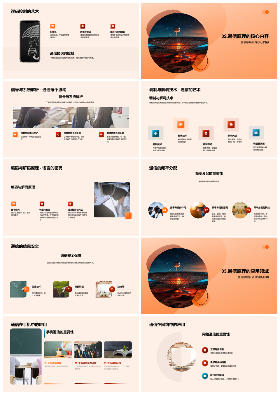 这是一张通信原理系统调制编解码手机网络卫星通信PPT模板,包含通信、原理、系统、调制、编解码、手机、网络、卫星、通信等主题内容,也可用作通信原理系统调制、通信系统调制编解码、系统调制编解码手机、调制编解码手机网络、编解码手机网络卫星通信、通信原理系统、原理系统调制、系统调制编解码、调制编解码手机、编解码手机网络、手机网络卫星通信、通信原理、原理系统、系统调制、调制编解码等PPT场景使用。 风云办公提供的通信原理系统调制编解码手机网络卫星通信PPT模板,下载格式为pptx,一共33页,作品中文字及图均可以修改和编辑,图片更改请在作品中右键图片并更换,文字修改请直接点击文字进行修改。