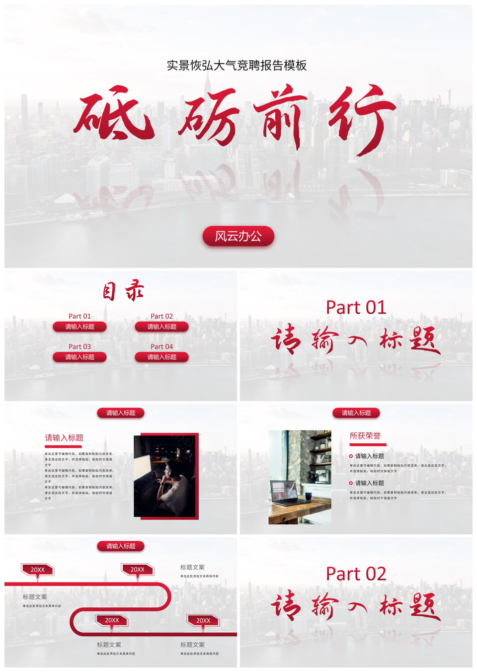 这是一张红色恢弘大气竞聘PPT模板,包含红色、恢弘大气、竞聘等主题内容,也可用作红色恢弘大气竞聘、红色恢弘大气、红色恢弘竞聘、红色大气竞聘、恢弘大气竞聘、红色恢弘、红色大气、红色竞聘、恢弘大气、恢弘竞聘、大气竞聘、恢弘红色、红色恢弘竞聘、恢弘红色竞聘、大气恢弘竞聘等PPT场景使用。 风云办公提供的红色恢弘大气竞聘PPT模板,下载格式为pptx,一共19页,作品中文字及图均可以修改和编辑,图片更改请在作品中右键图片并更换,文字修改请直接点击文字进行修改。