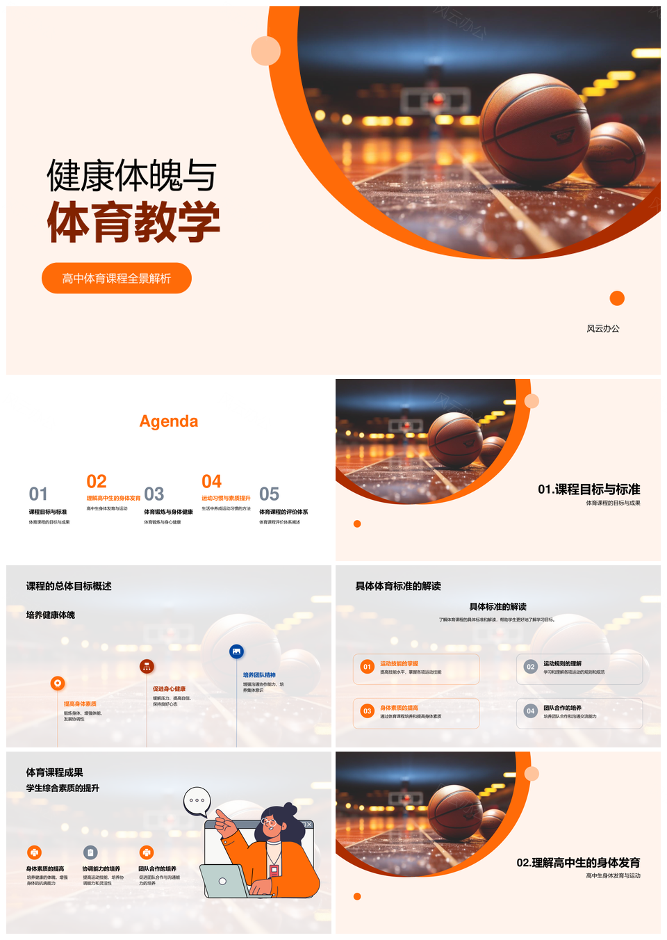 风云办公提供的高中体育课程目标与健康体魄标准培养PPT模板,下载格式为pptx,一共23页,作品中文字及图均可以修改和编辑,图片更改请在作品中右键图片并更换,文字修改请直接点击文字进行修改。