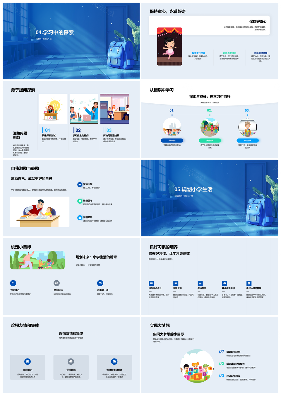 小学新生学习生活娱乐交友团队目标成长PPT模板推荐