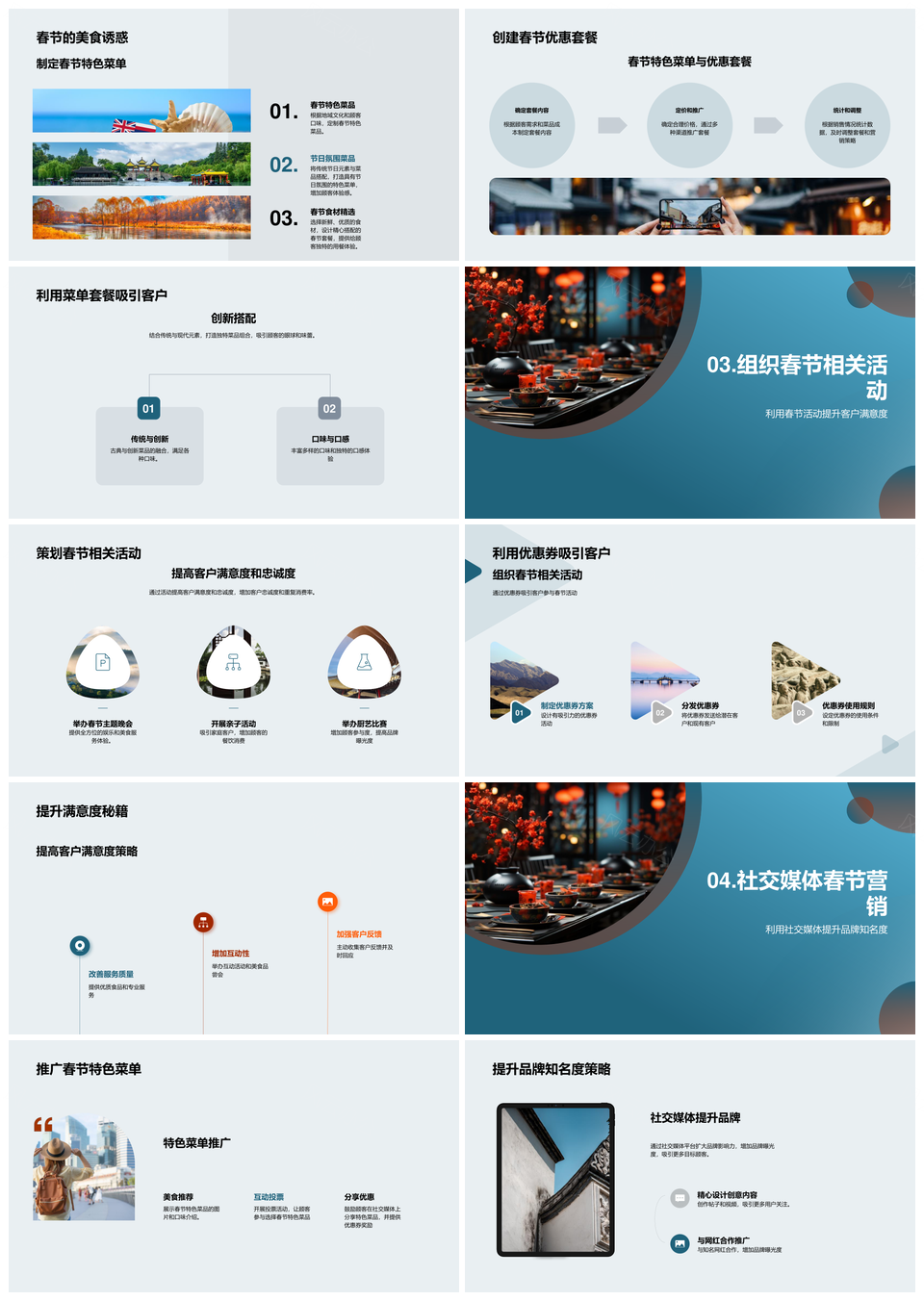 这是一张春节餐饮业商机趋势特色套餐灯笼需求满意PPT模板,包含春节、餐饮业、商机、趋势、特色套餐、灯笼、需求、满意等主题内容,也可用作春节餐饮业商机趋势特色套餐、餐饮业商机趋势特色套餐灯笼、商机趋势特色套餐灯笼需求、趋势特色套餐灯笼需求满意、春节餐饮业特色套餐商机、春节特色套餐灯笼需求、餐饮业商机趋势特色套餐、商机特色套餐灯笼需求、趋势灯笼需求满意、春节餐饮业商机趋势、餐饮业商机趋势特色、商机趋势灯笼需求、特色套餐需求满意、春节灯笼需求满意、餐饮业特色套餐商机等PPT场景使用。 风云办公提供的春节餐饮业商机趋势特色套餐灯笼需求满意PPT模板,下载格式为pptx,一共23页,作品中文字及图均可以修改和编辑,图片更改请在作品中右键图片并更换,文字修改请直接点击文字进行修改。