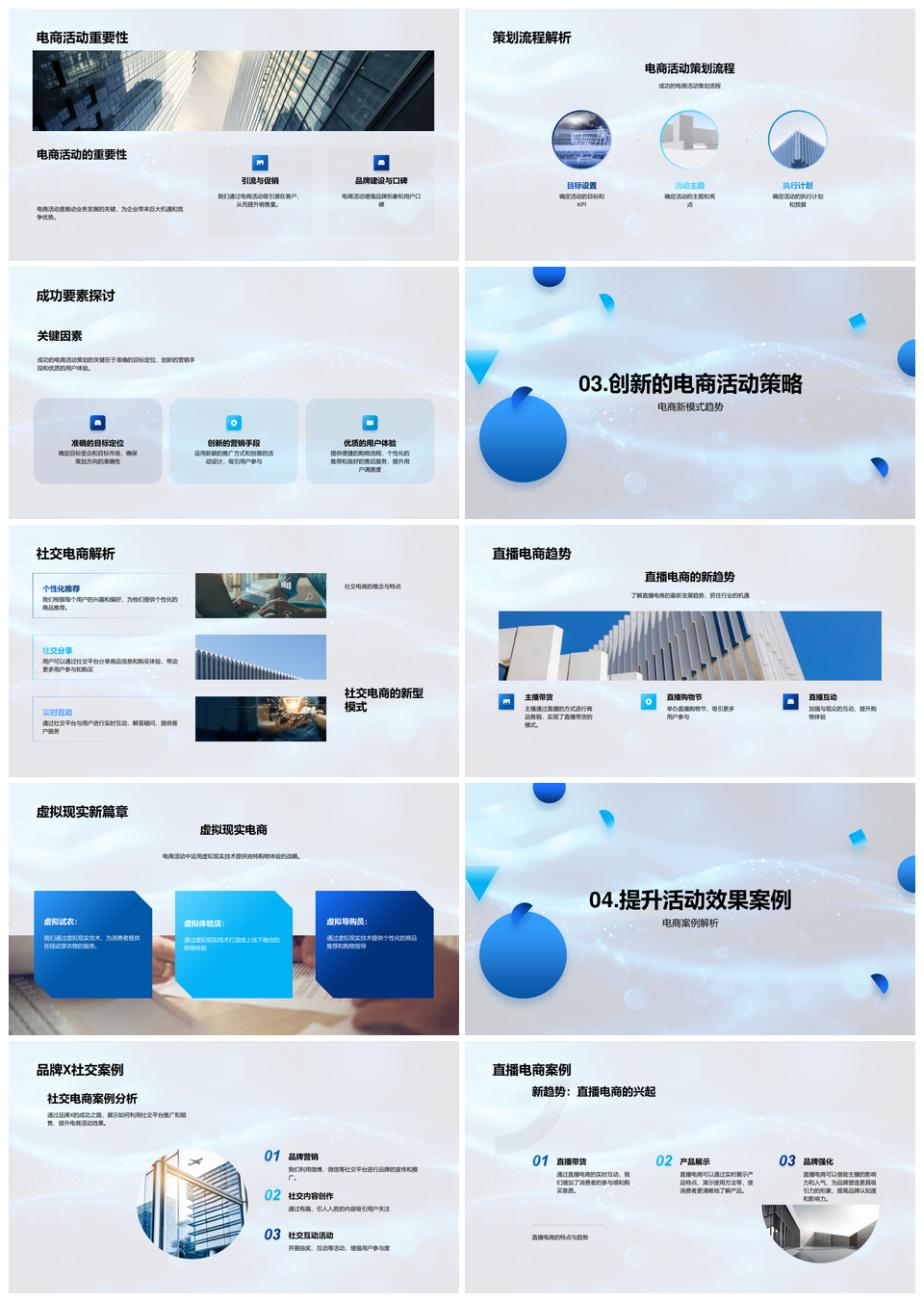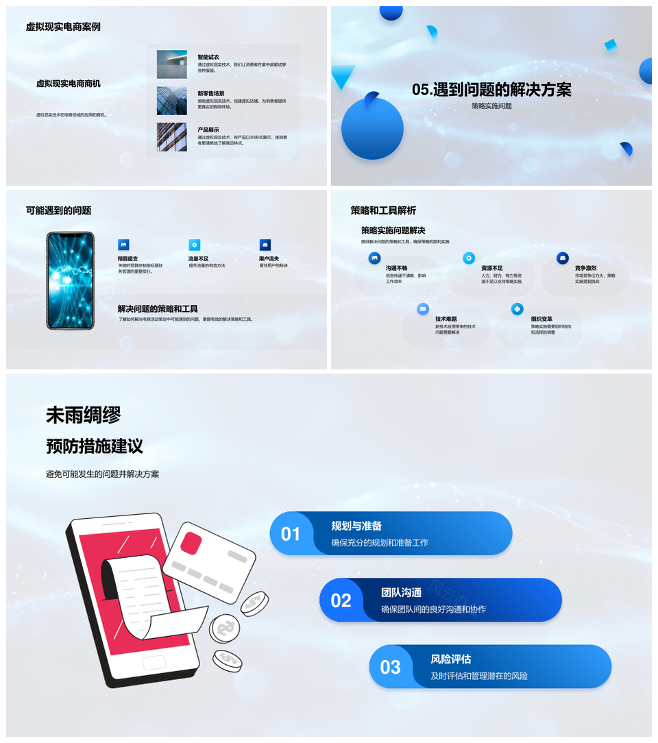 电商战略新动向社交直播虚拟现实市场机遇挑战PPT模板推荐