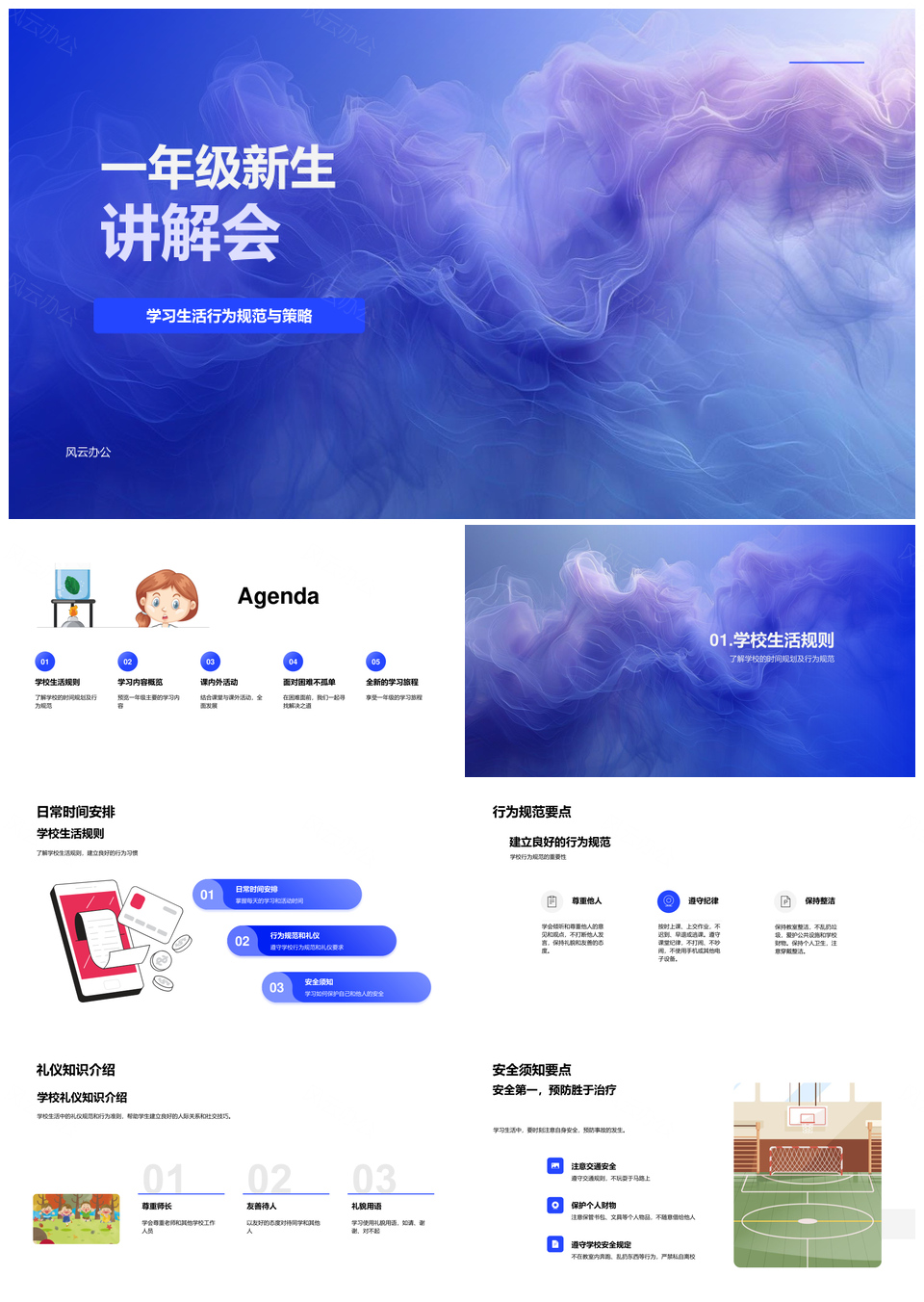 这是一张一年级新生讲解会日程规范安全学科课堂礼仪PPT模板,包含一年级、新生、讲解会、日程、规范、安全、学科、课堂、礼仪等主题内容,也可用作一年级新生讲解会日程规范、新生讲解会日程规范安全、讲解会日程规范安全学科、日程规范安全学科课堂、规范安全学科课堂礼仪、一年级新生讲解会日程、新生讲解会日程规范、讲解会日程规范安全、日程规范安全学科、规范安全学科课堂、安全学科课堂礼仪、一年级新生讲解会、新生讲解会日程、讲解会日程规范、日程规范安全、规范安全学科、安全学科课堂、学科课堂礼仪、课堂礼仪规范、安全学科礼仪等PPT场景使用。 风云办公提供的一年级新生讲解会日程规范安全学科课堂礼仪PPT模板,下载格式为pptx,一共33页,作品中文字及图均可以修改和编辑,图片更改请在作品中右键图片并更换,文字修改请直接点击文字进行修改。