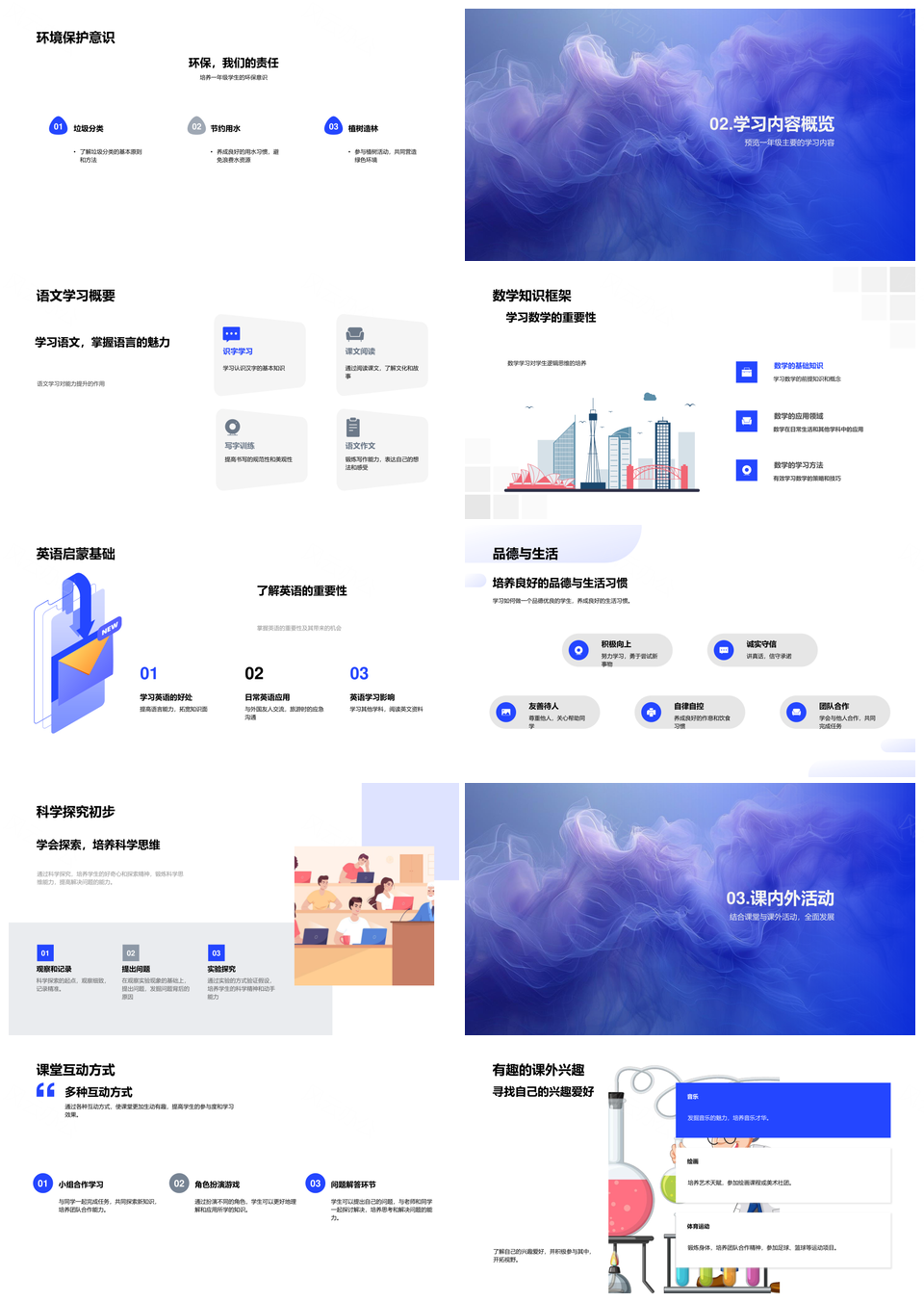 2025一年级新生校园课程时间学科高效指南PPT模板