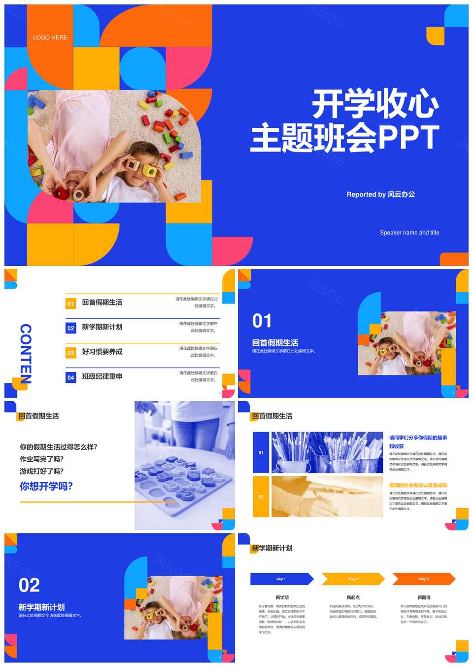 蓝色欢乐童趣卡通教育培训教师公开课件亲子活动家长会通用PPT模板