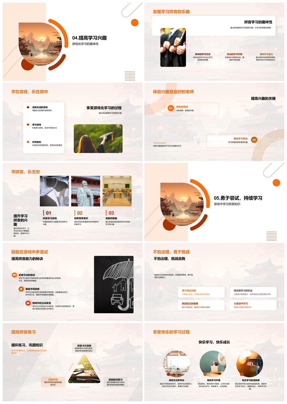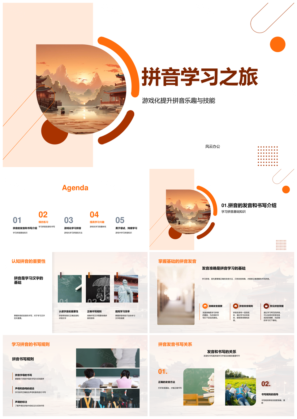 风云办公提供的游戏化拼音互动趣学发音书写技能提升PPT模板,下载格式为pptx,一共28页,作品中文字及图均可以修改和编辑,图片更改请在作品中右键图片并更换,文字修改请直接点击文字进行修改。