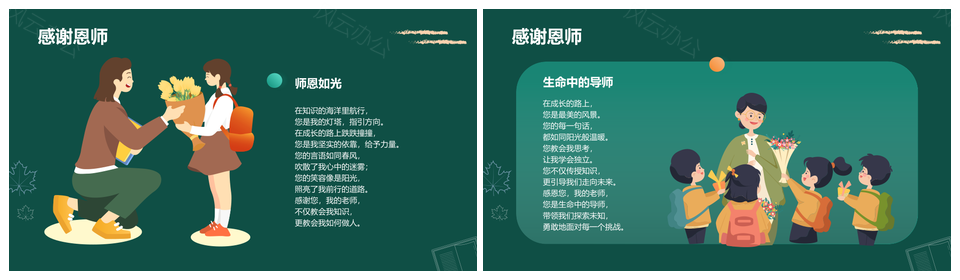 2025教师节感恩老师教育发展师恩表彰花朵PPT模板