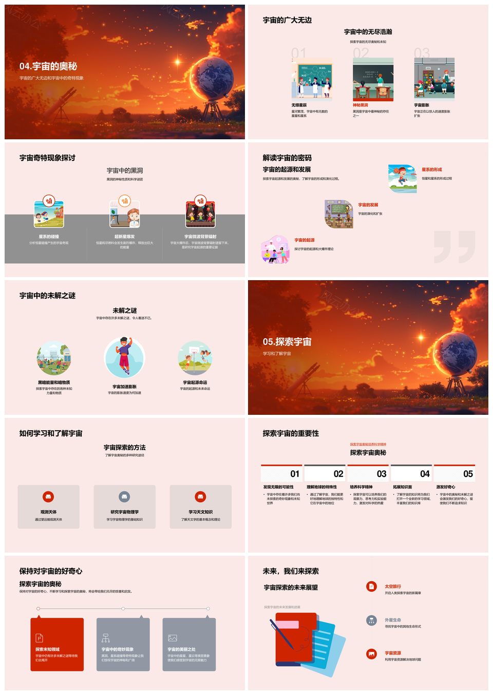 这是一张太阳系宇宙地球形成星星黑洞科普教育探秘PPT模板,包含太阳系、宇宙、地球、形成、星星、黑洞、科普教育、探秘等主题内容,也可用作太阳系宇宙地球形成、地球形成星星黑洞、黑洞科普教育探秘、太阳系形成星星黑洞、宇宙地球形成星星、形成星星黑洞科普、星星黑洞科普教育、科普教育探秘太阳系、宇宙地球形成黑洞、地球星星黑洞科普、太阳系宇宙地球、科普教育探秘、地球形成星星、黑洞科普教育、形成星星黑洞等PPT场景使用。 风云办公提供的太阳系宇宙地球形成星星黑洞科普教育探秘PPT模板,下载格式为pptx,一共28页,作品中文字及图均可以修改和编辑,图片更改请在作品中右键图片并更换,文字修改请直接点击文字进行修改。