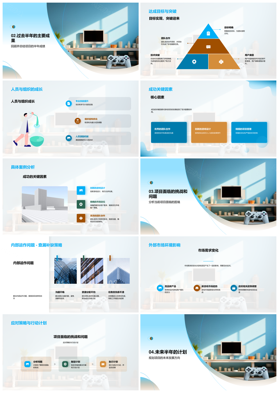 风云办公提供的游戏项目半年挑战进展团队目标规划PPT模板,下载格式为pptx,一共25页,作品中文字及图均可以修改和编辑,图片更改请在作品中右键图片并更换,文字修改请直接点击文字进行修改。