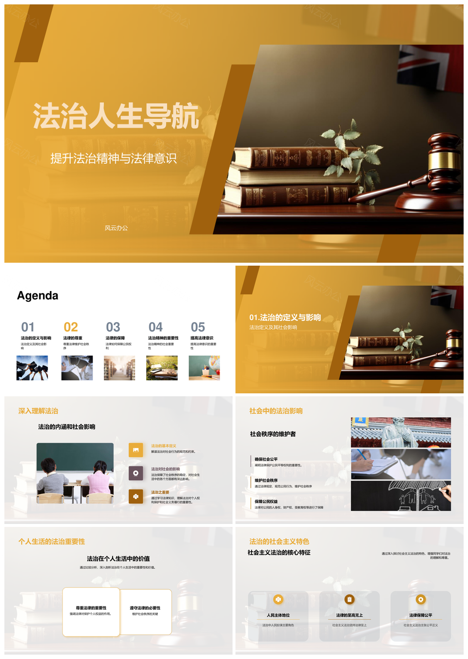 风云办公提供的法治精神法律意识导航人生PPT模板,下载格式为pptx,一共33页,作品中文字及图均可以修改和编辑,图片更改请在作品中右键图片并更换,文字修改请直接点击文字进行修改。