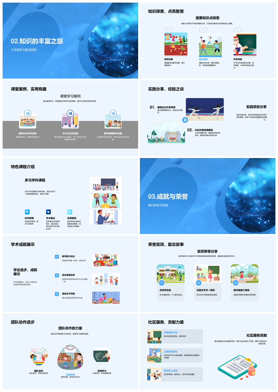 风云办公提供的三年级学习成果经验成长与实践总结PPT模板,下载格式为pptx,一共28页,作品中文字及图均可以修改和编辑,图片更改请在作品中右键图片并更换,文字修改请直接点击文字进行修改。