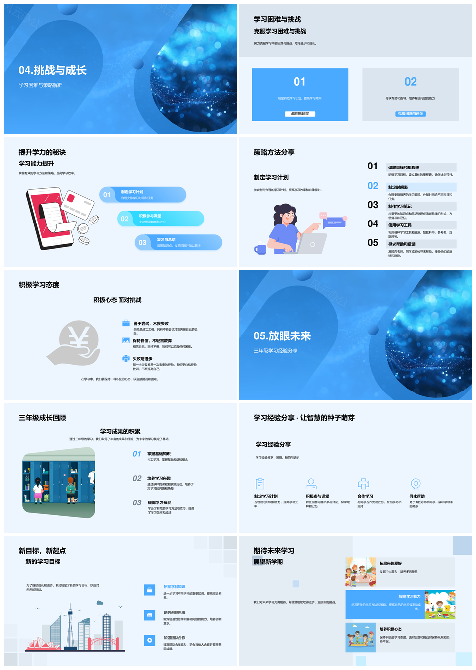 这是一张三年级学习成果经验成长与实践总结PPT模板,包含学习成果、经验、成长、实践、总结等主题内容,也可用作三年级学习成果经验、学习成果经验成长、成果经验成长实践、经验成长实践总结、三年级学习成果总结、三年级学习实践总结、学习成果实践总结、成果经验实践总结、三年级学习成果、学习成果经验、成果经验成长、经验成长实践、成长实践总结、三年级学习经验、三年级学习实践等PPT场景使用。