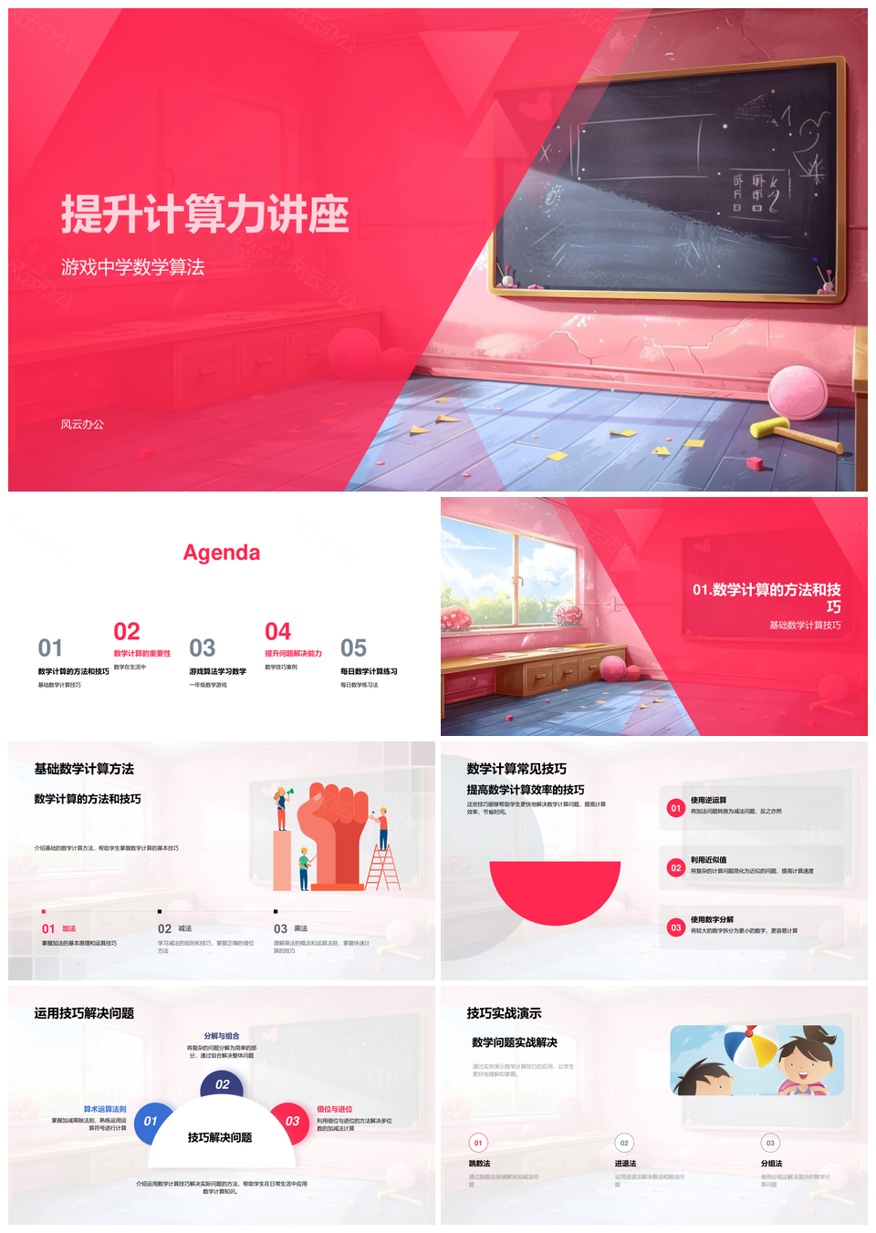 风云办公提供的提升计算力数学游戏技巧应用讲座PPT模板,下载格式为pptx,一共33页,作品中文字及图均可以修改和编辑,图片更改请在作品中右键图片并更换,文字修改请直接点击文字进行修改。