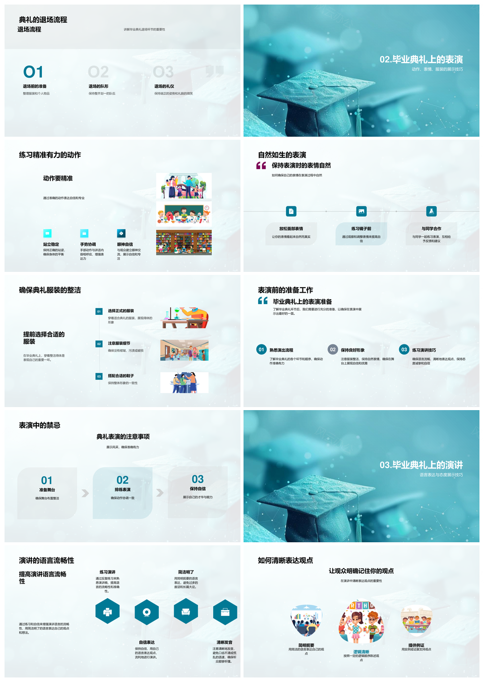 这是一张六年级毕业典礼流程礼仪风采教师形象指南PPT模板,包含毕业典礼、流程、礼仪、风采、教师、形象、指南等主题内容,也可用作六年级毕业典礼流程礼仪、毕业典礼流程礼仪风采、流程礼仪风采教师、礼仪风采教师形象、风采教师形象指南、六年级毕业典礼教师形象、毕业典礼流程礼仪、流程礼仪风采、礼仪风采教师、风采教师形象、教师形象指南、六年级毕业典礼流程、六年级毕业典礼礼仪、毕业典礼礼仪风采、流程礼仪教师等PPT场景使用。 风云办公提供的六年级毕业典礼流程礼仪风采教师形象指南PPT模板,下载格式为pptx,一共32页,作品中文字及图均可以修改和编辑,图片更改请在作品中右键图片并更换,文字修改请直接点击文字进行修改。