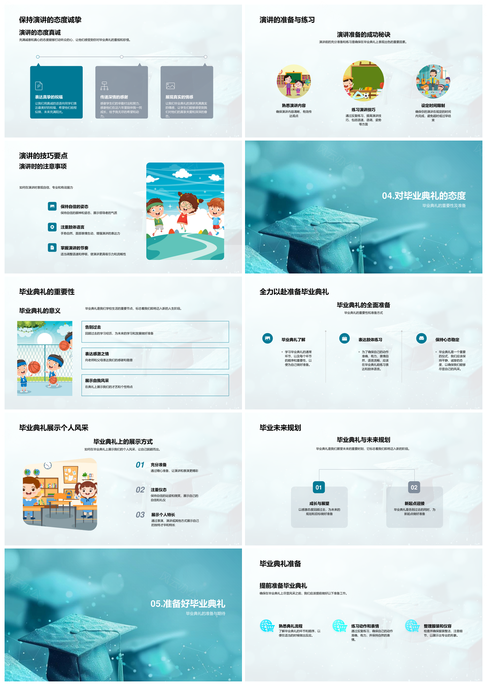 六年级毕业典礼流程礼仪风采教师形象指南PPT模板推荐