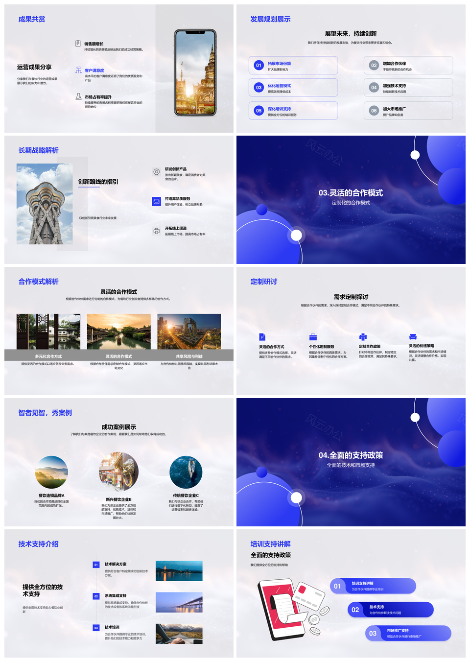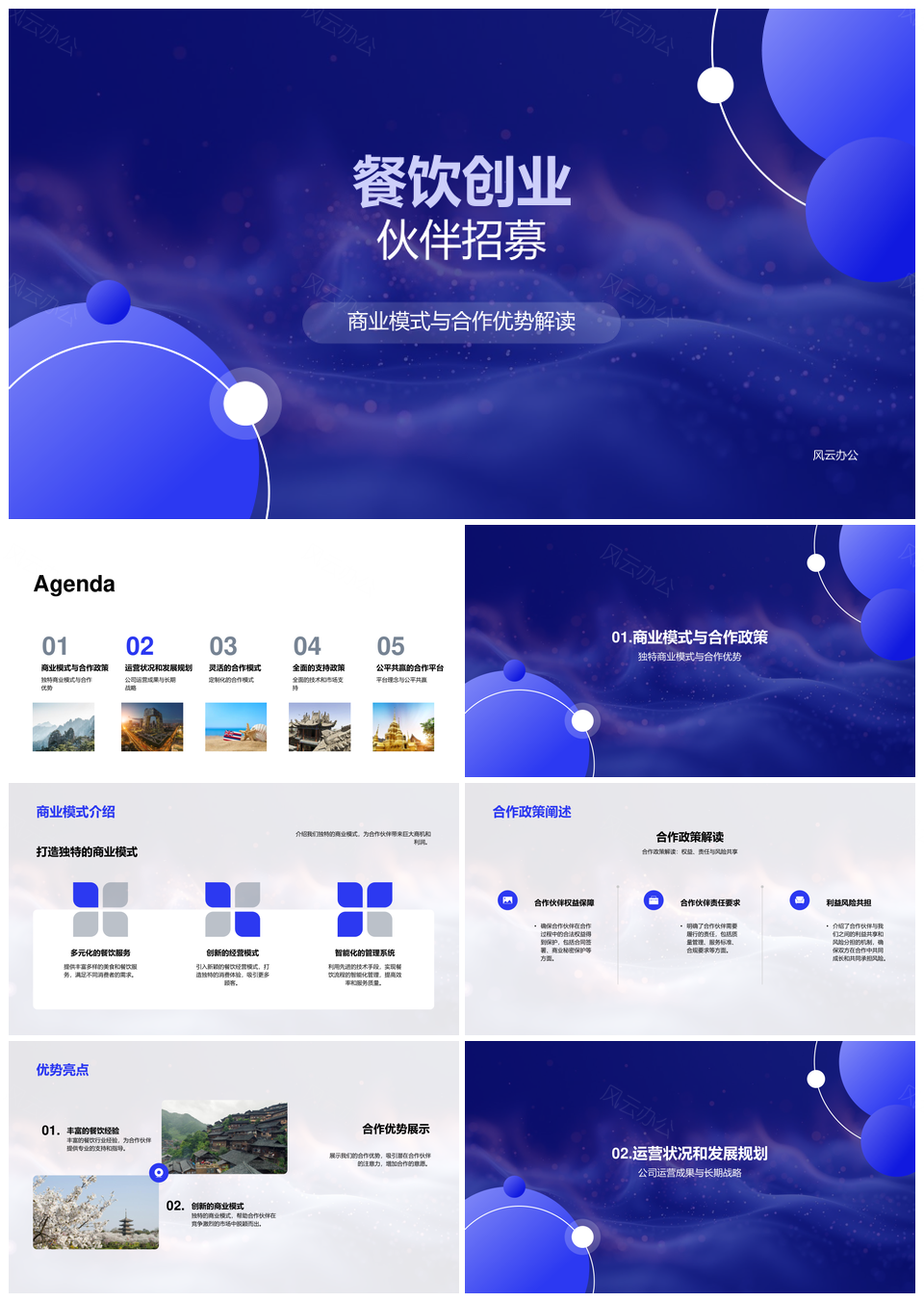 这是一张餐饮创业伙伴招募合作模式优势政策成果规划战略PPT模板,包含餐饮、创业伙伴、招募、合作、模式、优势、政策、成果、规划、战略等主题内容,也可用作餐饮创业伙伴招募合作、创业伙伴招募合作模式、伙伴招募合作模式优势、招募合作模式优势政策、合作模式优势政策成果、模式优势政策成果规划、优势政策成果规划战略、政策成果规划战略、餐饮创业伙伴招募、创业伙伴招募合作、伙伴招募合作模式、招募合作模式优势、合作模式优势政策、模式优势政策成果、优势政策成果规划等PPT场景使用。 风云办公提供的餐饮创业伙伴招募合作模式优势政策成果规划战略PPT模板,下载格式为pptx,一共24页,作品中文字及图均可以修改和编辑,图片更改请在作品中右键图片并更换,文字修改请直接点击文字进行修改。