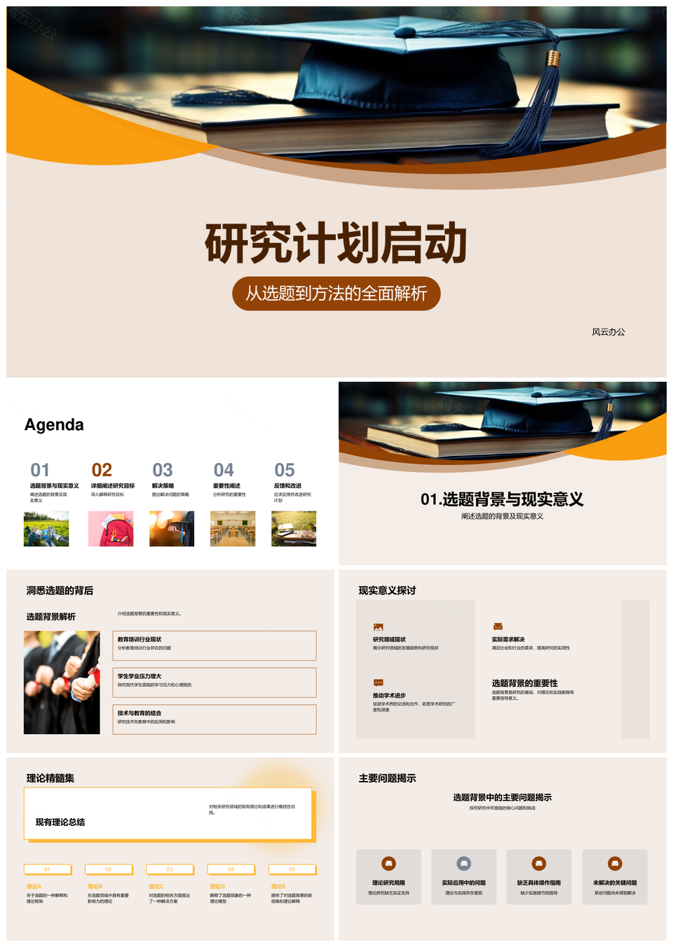 研究计划启动背景方法论证及学术社会影响PPT模板推荐