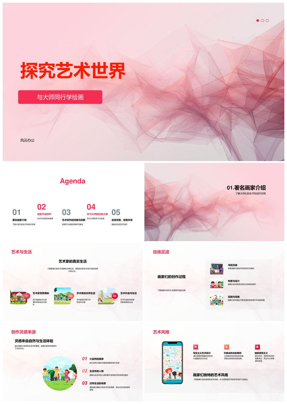 风云办公提供的艺术世界大师绘画技法与生活风格展PPT模板,下载格式为pptx,一共28页,作品中文字及图均可以修改和编辑,图片更改请在作品中右键图片并更换,文字修改请直接点击文字进行修改。