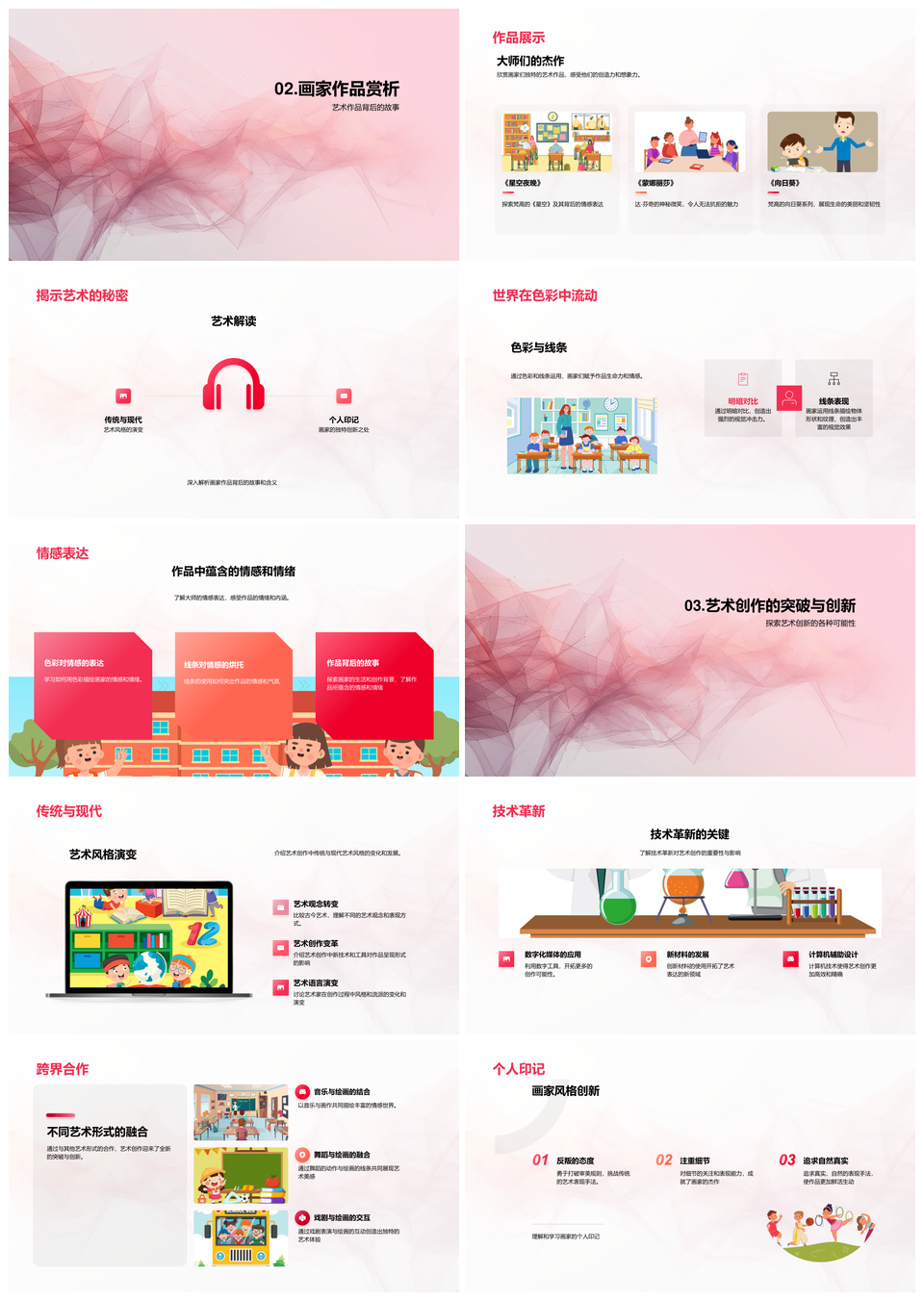 这是一张艺术世界大师绘画技法与生活风格展PPT模板,包含艺术、世界、大师、绘画、技法、生活、风格、展等主题内容,也可用作艺术世界大师绘画、艺术世界绘画技法、大师绘画技法生活、绘画技法生活风格、艺术大师绘画技法、世界大师绘画技法、艺术世界生活风格、大师绘画生活风格、技法生活风格展、艺术生活风格展、艺术世界大师、世界大师绘画、生活风格展、技法生活风格、艺术生活风格等PPT场景使用。