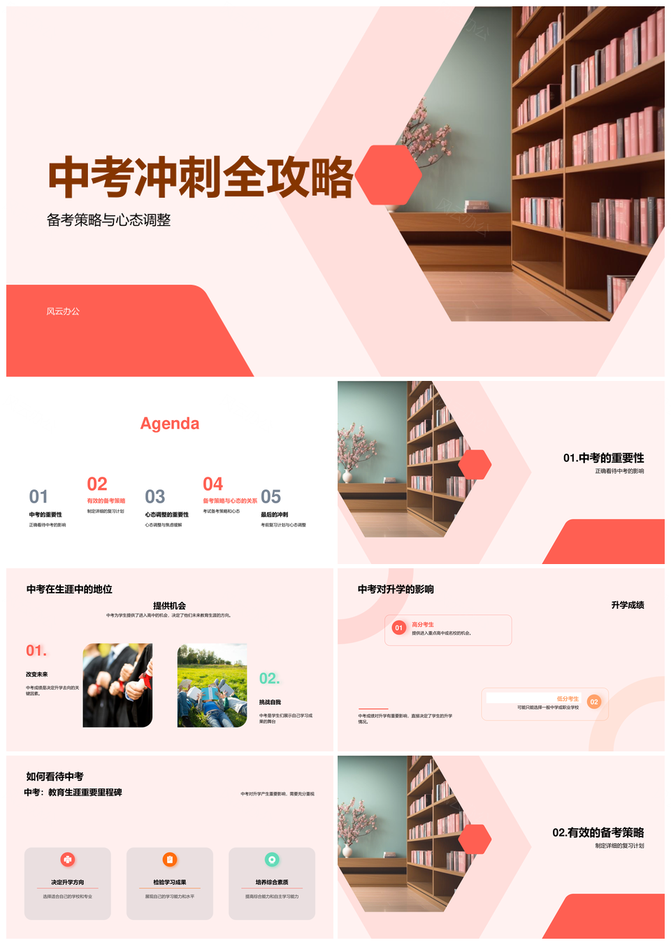 风云办公提供的中考冲刺备考策略分科复习心态调整PPT模板,下载格式为pptx,一共24页,作品中文字及图均可以修改和编辑,图片更改请在作品中右键图片并更换,文字修改请直接点击文字进行修改。