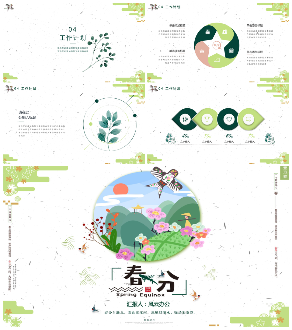 绿色春分节气唯美手绘中国风小清新PPT模板