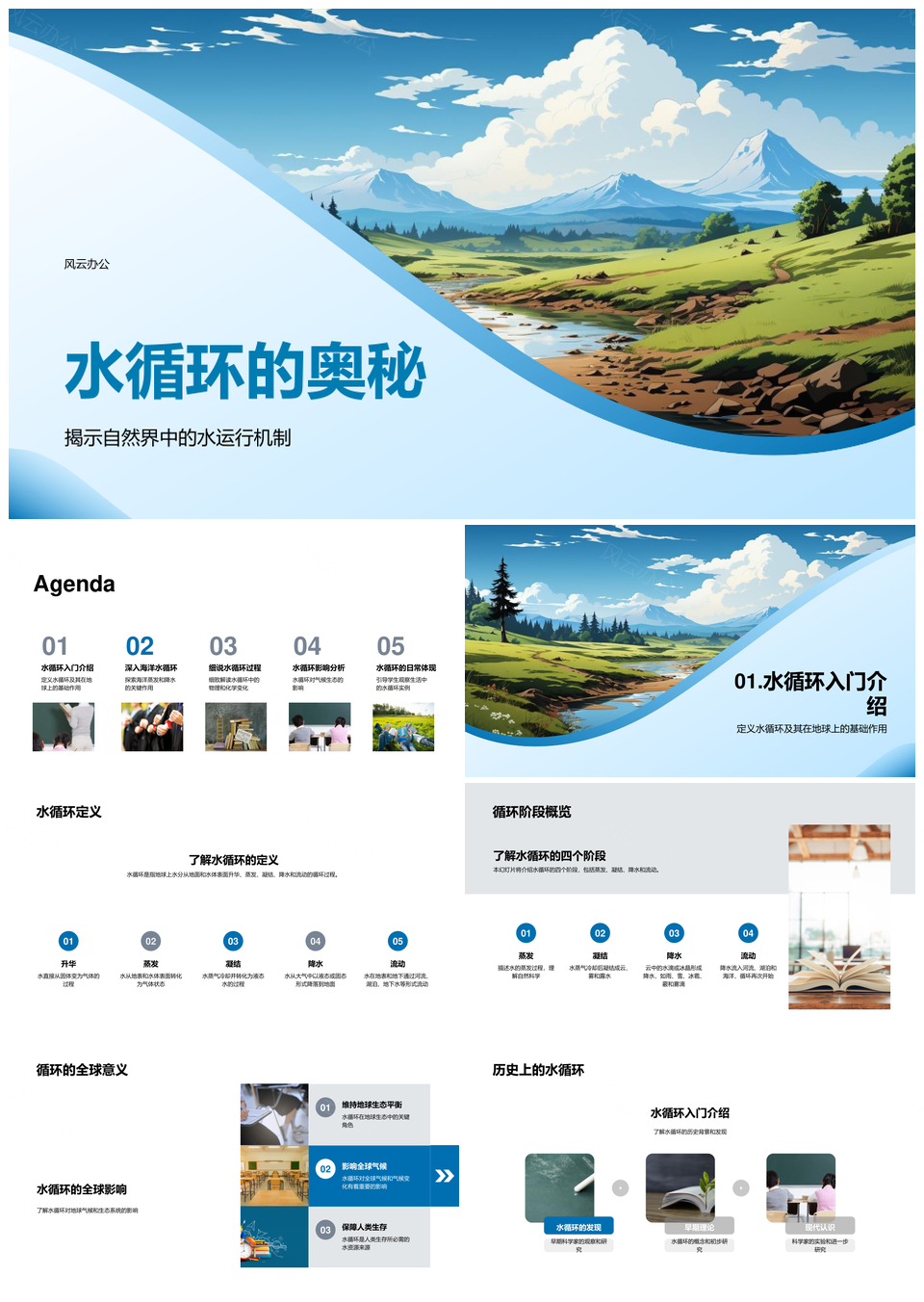 水循环蒸发凝结降水渗透流动全球气候生态密钥PPT模板