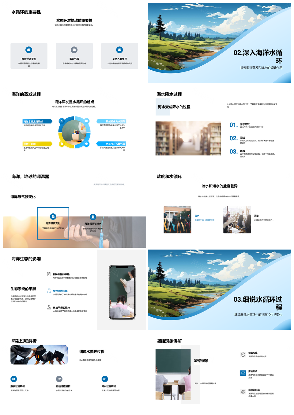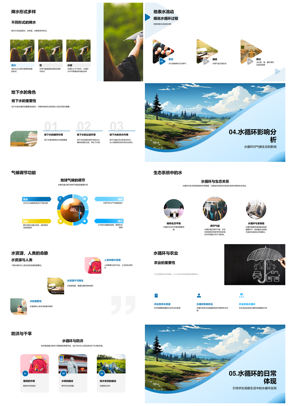 2025水循环节水护源蒸发凝结降水稳生态气候PPT模板