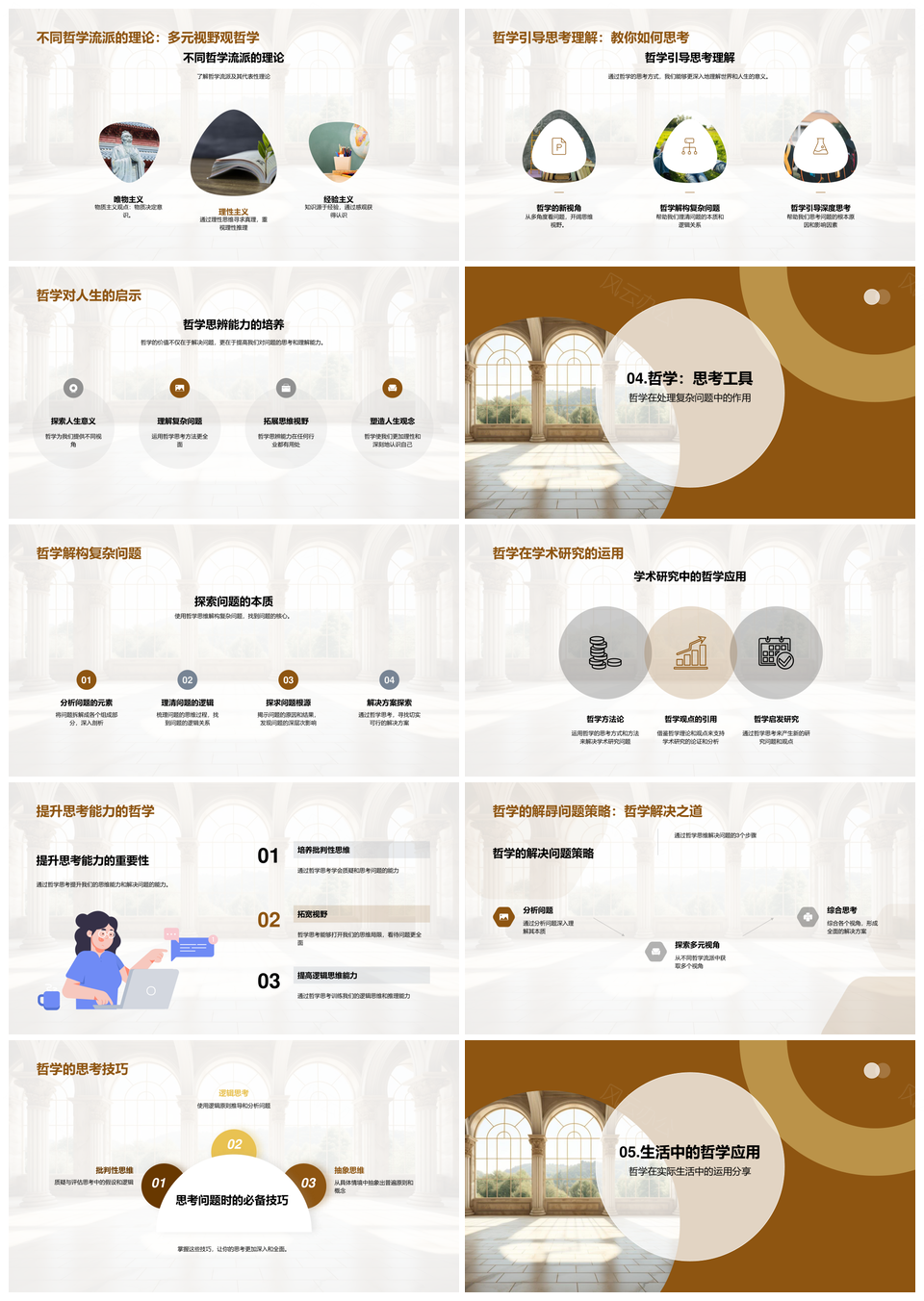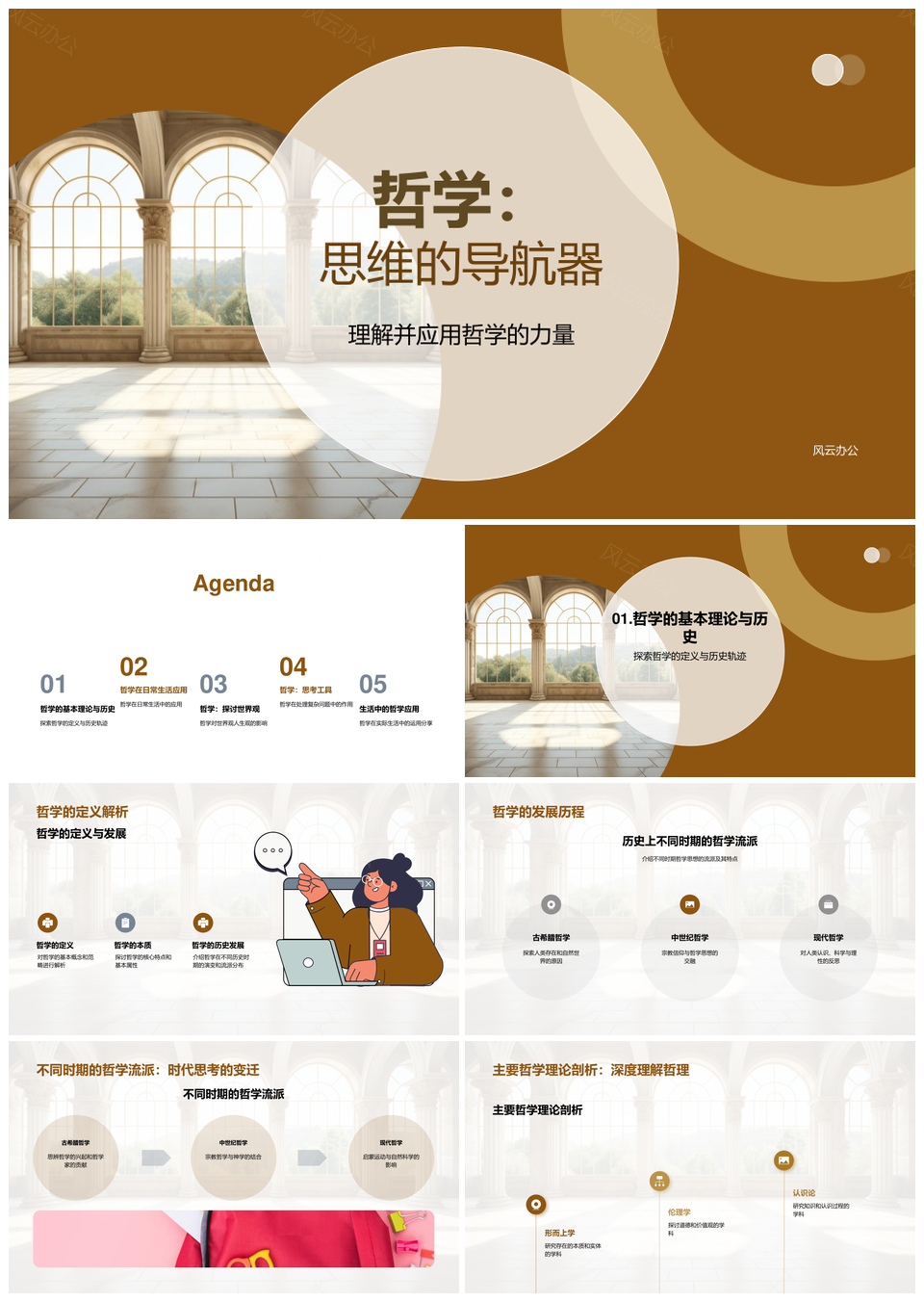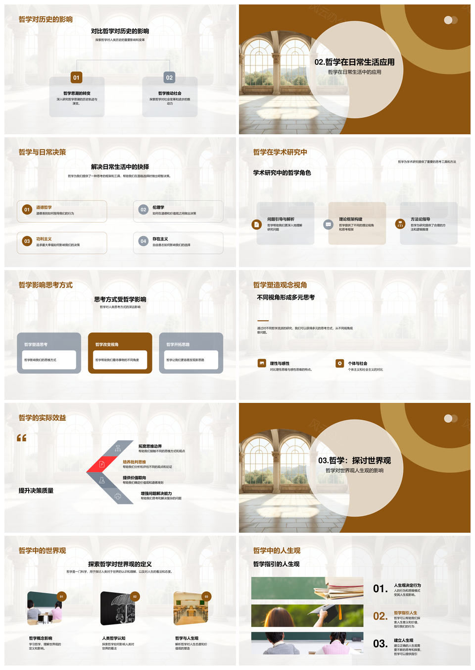 哲学历史流派指引生活思维世界观人生观PPT模板推荐