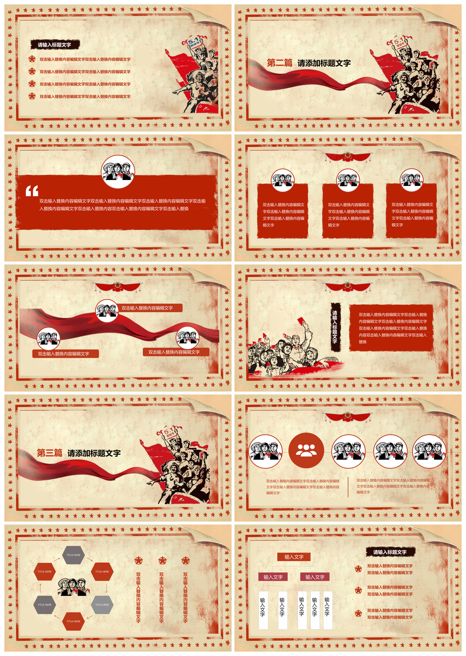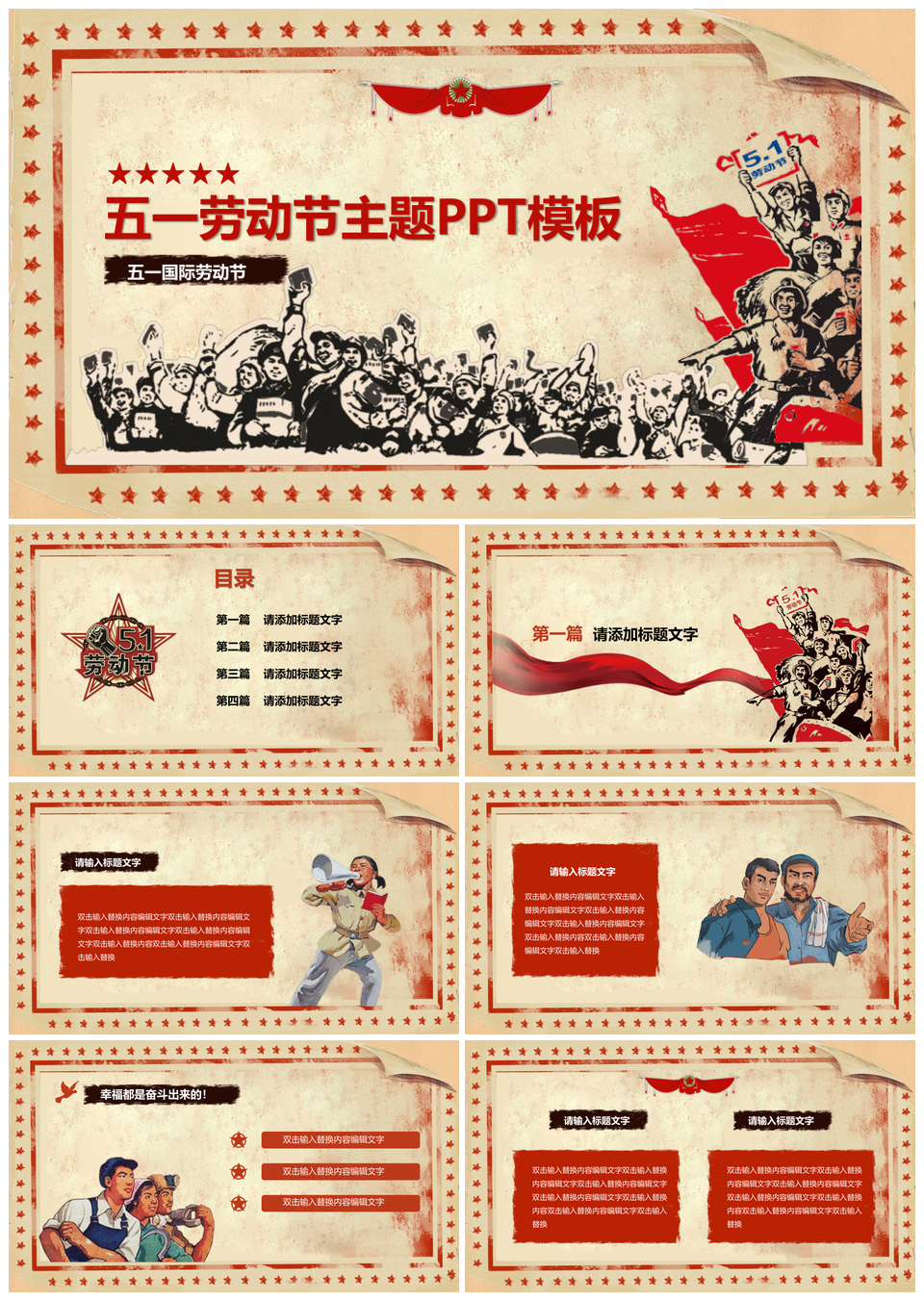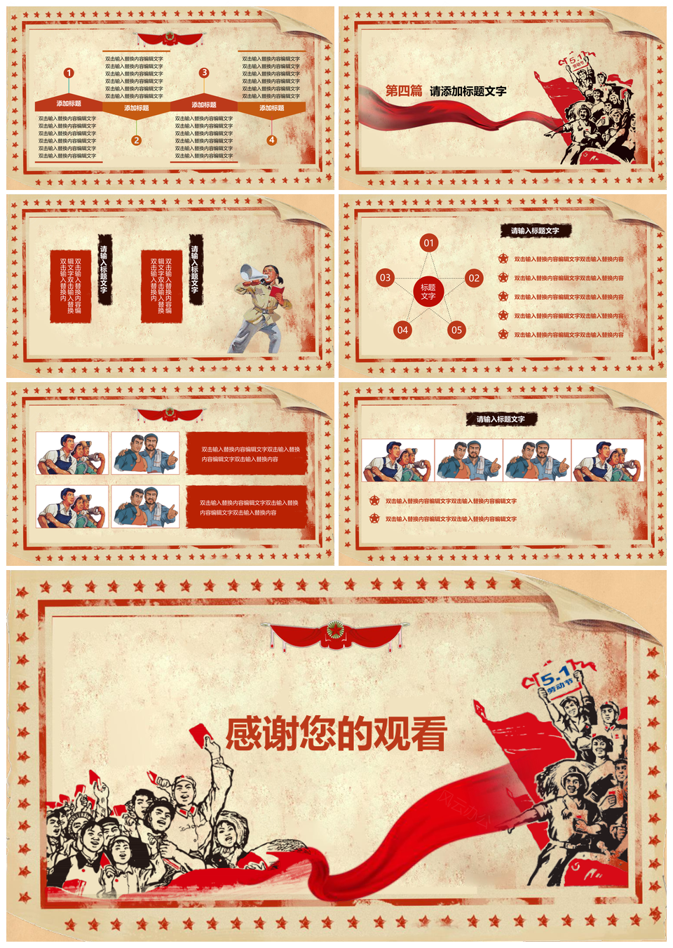 这是一张复古风五一劳动节主题PPT模板,包含复古风、五一劳动节、主题等主题内容,也可用作复古风、五一、劳动节、主题 复古风五一劳动节主题、复古风五一劳动节、五一劳动节主题、复古风五一、复古风劳动节、复古风主题、五一劳动节、五一主题、劳动节主题等PPT场景使用。 风云办公提供的复古风五一劳动节主题PPT模板,下载格式为pptx,一共24页,作品中文字及图均可以修改和编辑,图片更改请在作品中右键图片并更换,文字修改请直接点击文字进行修改。