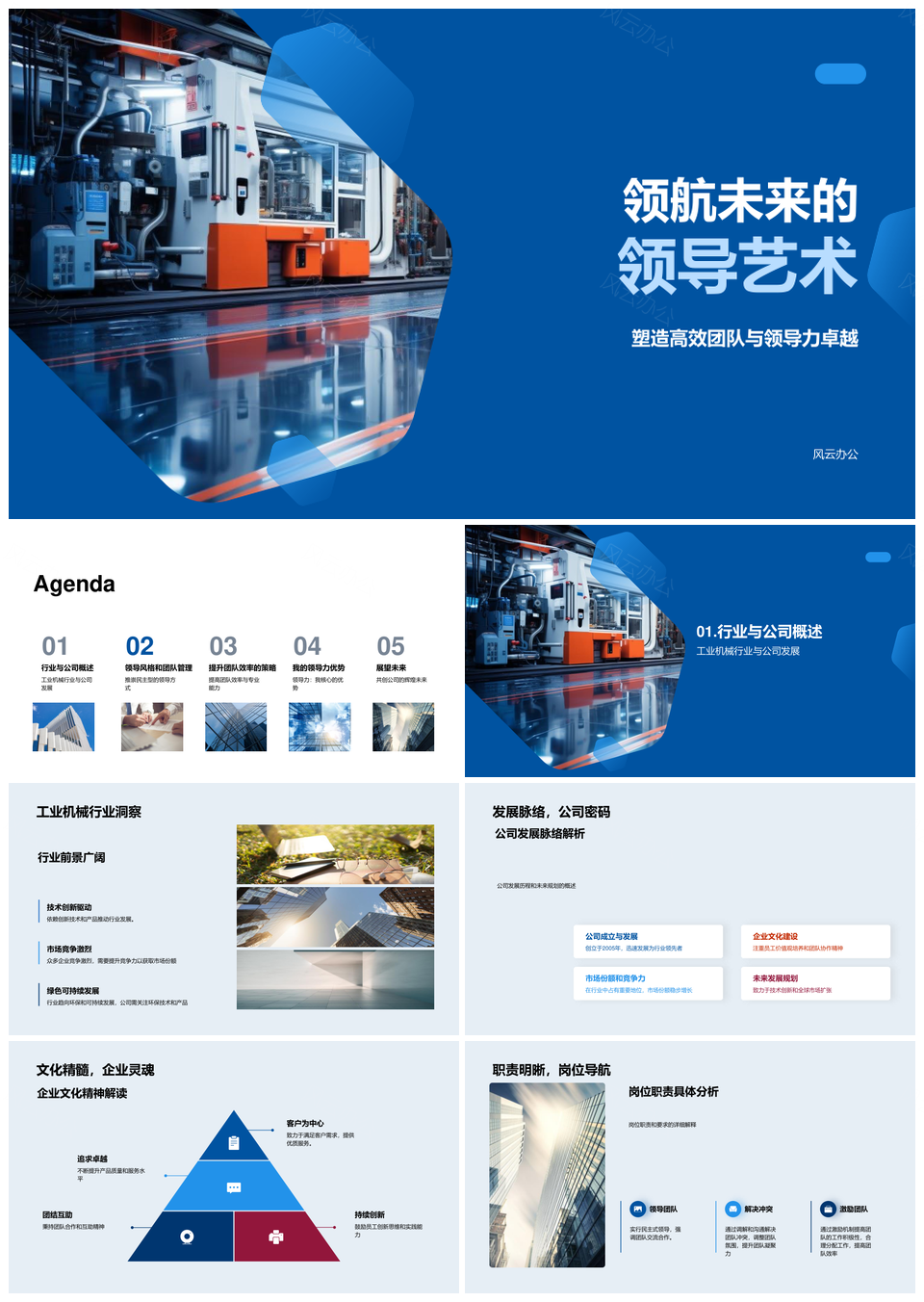 风云办公提供的工业机械卓越领导力高效团队管理PPT模板,下载格式为pptx,一共33页,作品中文字及图均可以修改和编辑,图片更改请在作品中右键图片并更换,文字修改请直接点击文字进行修改。
