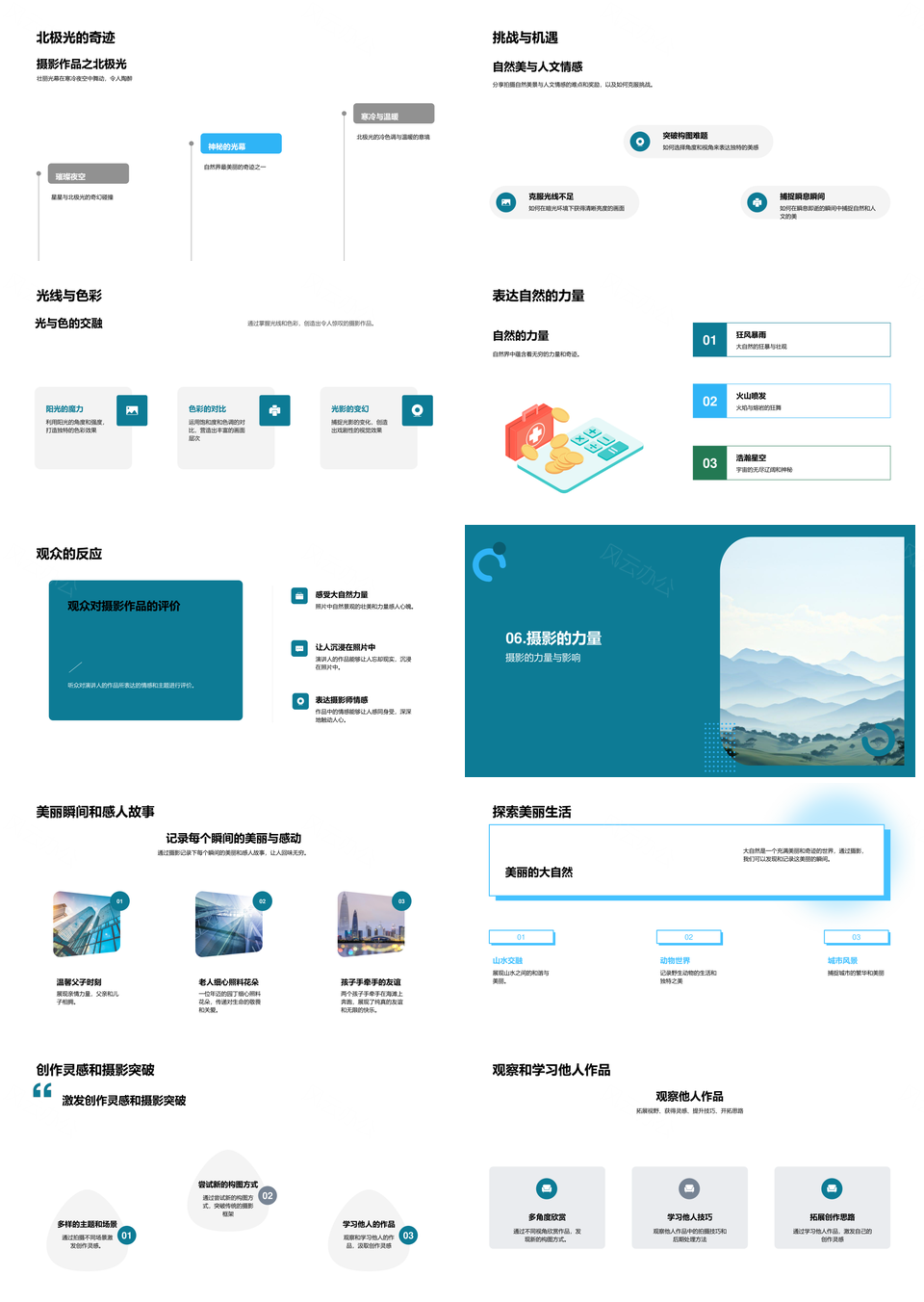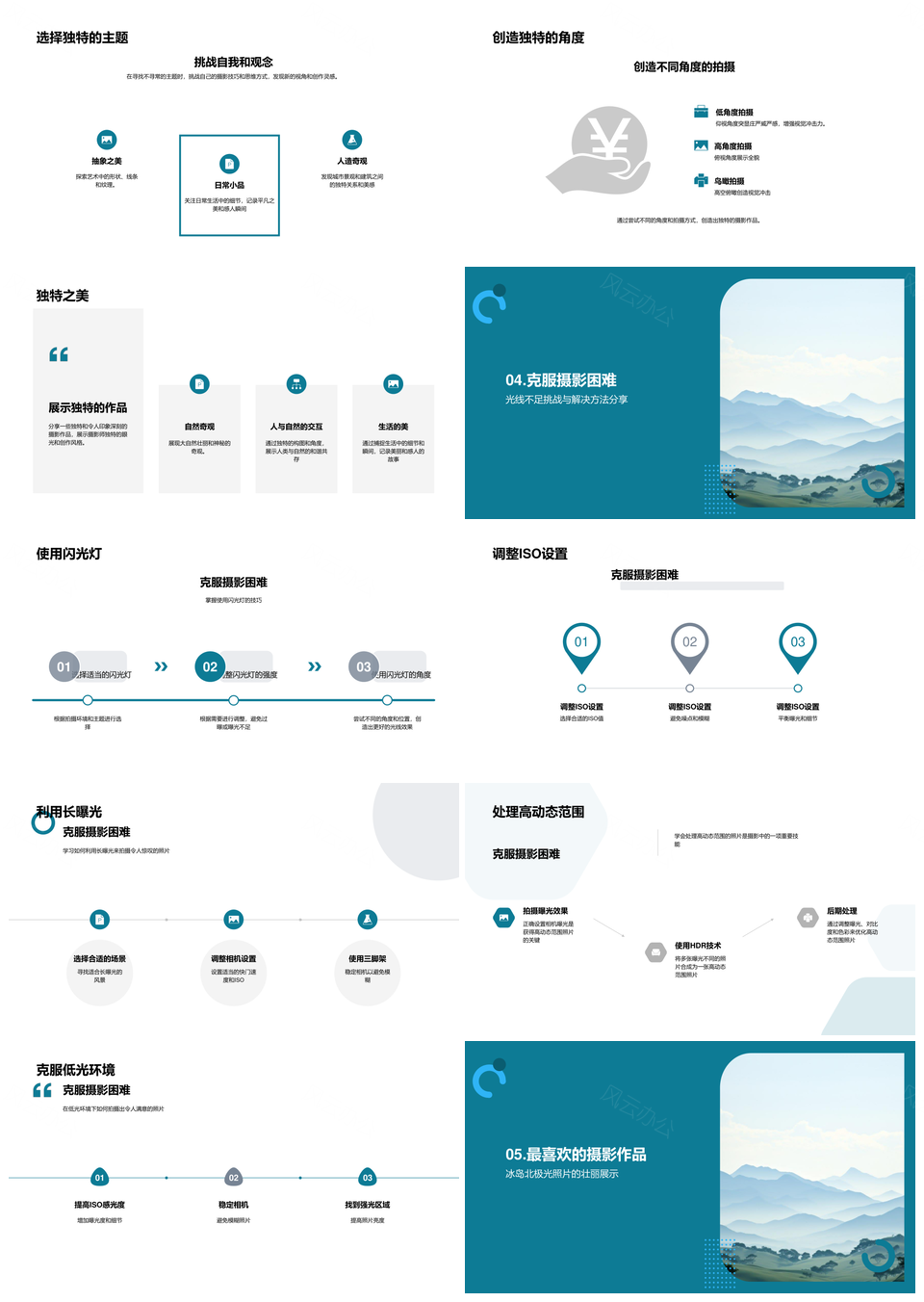 风云办公提供的风景摄影作品旅行相册演示图集模板,下载格式为pptx,一共40页,作品中文字及图均可以修改和编辑,图片更改请在作品中右键图片并更换,文字修改请直接点击文字进行修改。