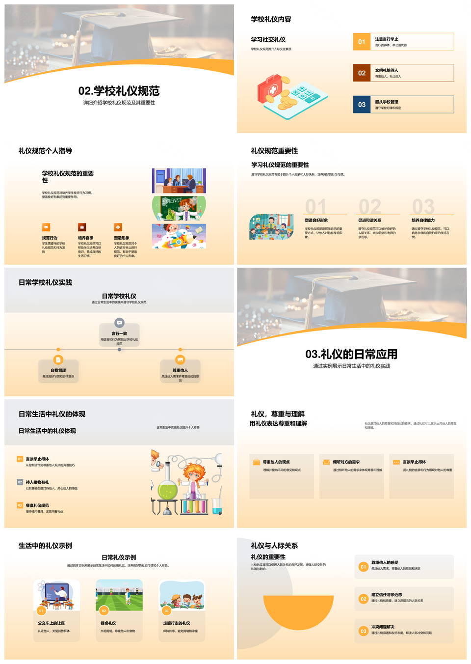 这是一张新生文明礼仪校园行为规范指导PPT模板,包含新生、文明礼仪、校园、行为规范、指导等主题内容,也可用作校园行为规范指导、新生文明礼仪规范、文明礼仪行为规范、新生校园行为规范、文明校园行为规范、文明礼仪校园、校园行为规范、行为规范指导、新生文明礼仪、新生行为规范、新生文明、文明礼仪、礼仪校园、校园行为、行为规范等PPT场景使用。