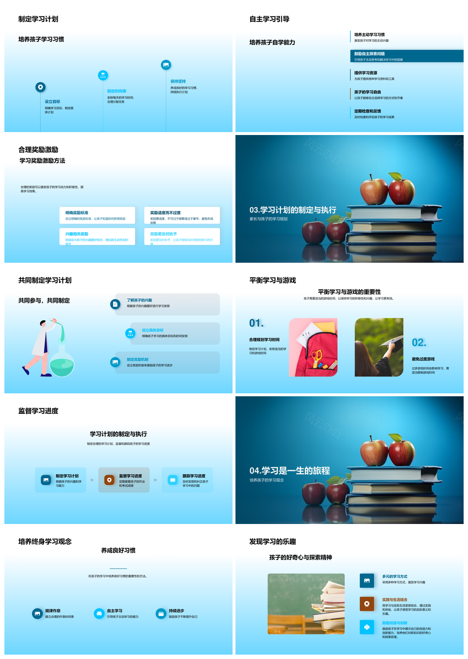一年级全科基础育儿策略书山计划助自主发展PPT模板推荐