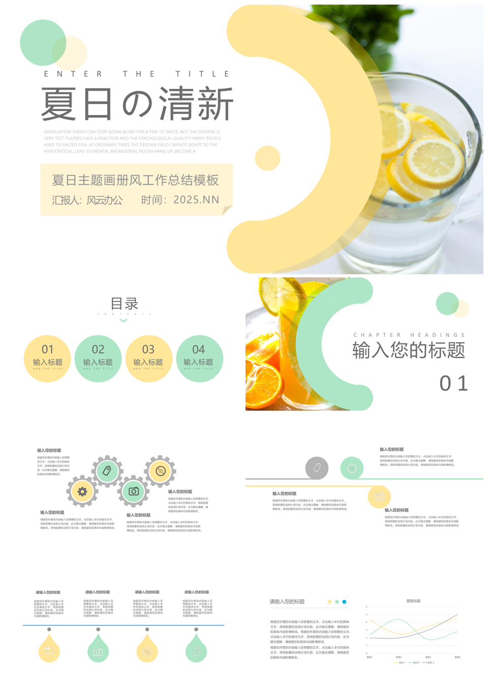 2025你好夏天小清新黄白实景工作汇报总结通用模板推荐