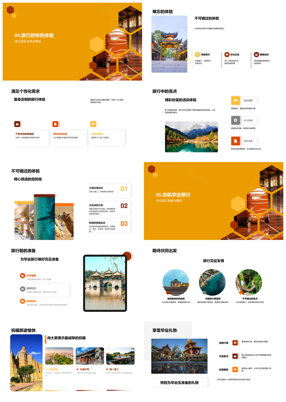 毕业旅行规划准备特色活动挑战体验感悟回顾PPT模板