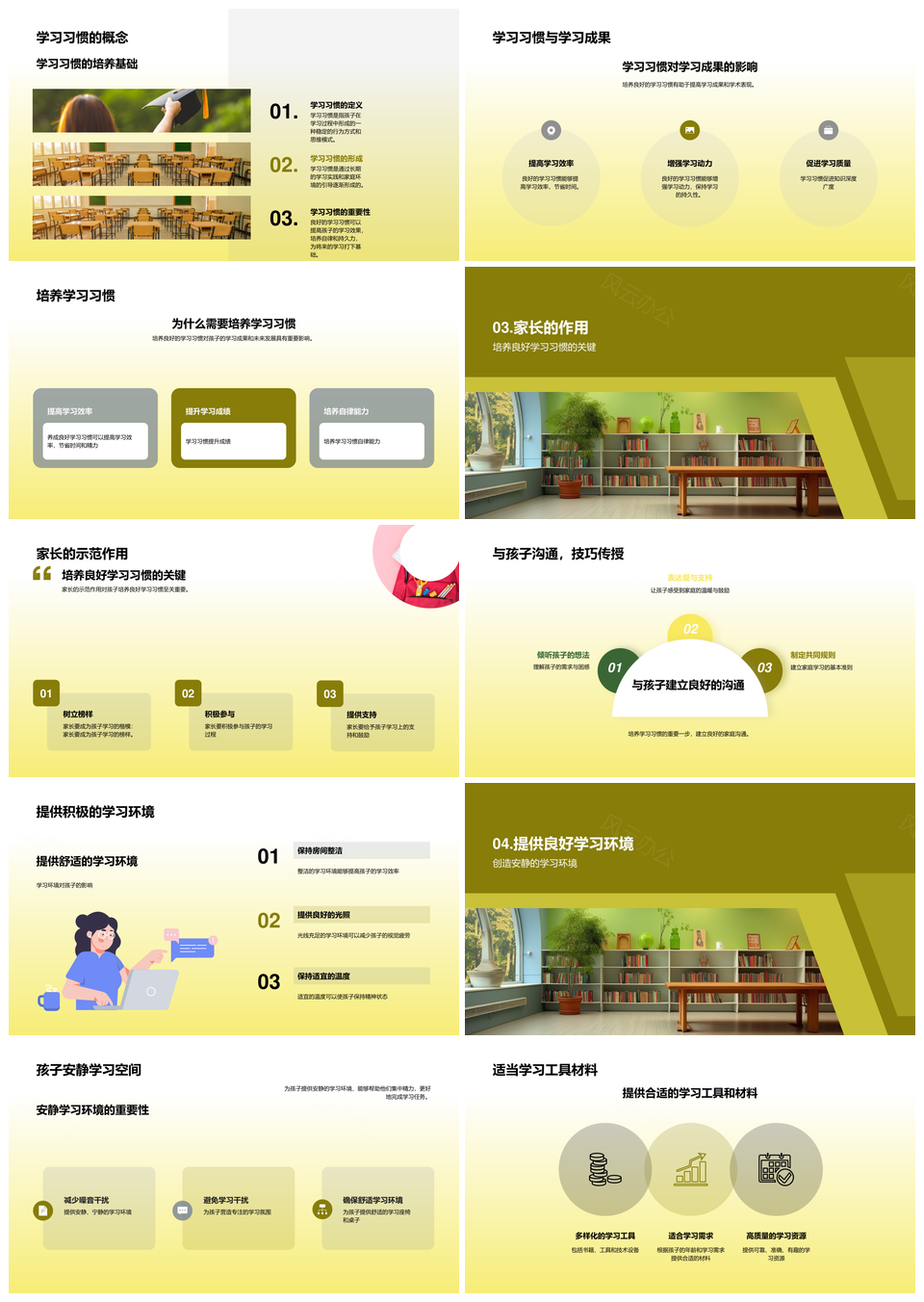 学生成长家长辅导学习习惯兴趣培养PPT模板