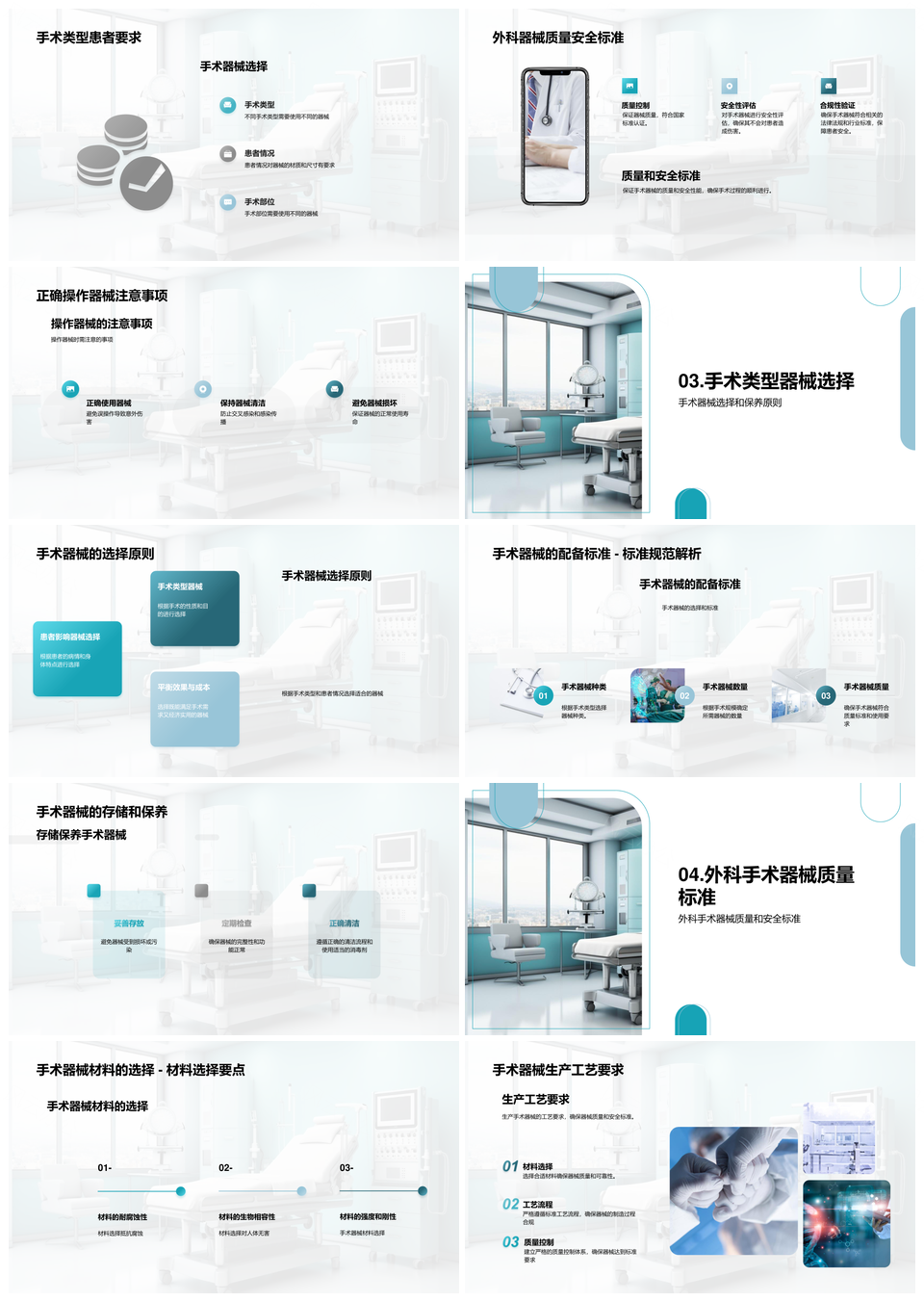 这是一张外科手术器械选择使用分类功能结构保障手术质量患者安全PPT模板,包含外科手术器械、选择、使用、分类、功能、结构、保障、手术质量、患者安全等主题内容,也可用作外科手术器械选择使用分类、外科手术器械选择使用、手术器械选择使用分类、器械选择使用分类功能、选择使用分类功能结构、外科手术器械选择、手术器械选择使用、器械选择使用分类、选择使用分类功能、使用分类功能结构、分类功能结构保障、功能结构保障手术、结构保障手术质量、保障手术质量患者、手术质量患者安全等PPT场景使用。 风云办公提供的外科手术器械选择使用分类功能结构保障手术质量患者安全PPT模板,下载格式为pptx,一共23页,作品中文字及图均可以修改和编辑,图片更改请在作品中右键图片并更换,文字修改请直接点击文字进行修改。