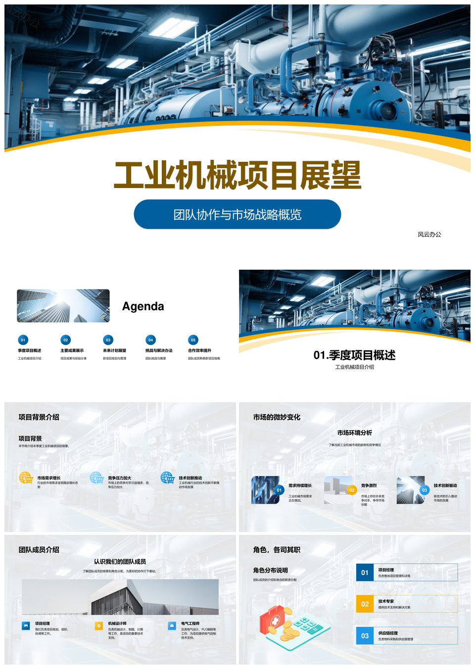 风云办公提供的工业机械新能源项目团队协作市场战略PPT模板,下载格式为pptx,一共33页,作品中文字及图均可以修改和编辑,图片更改请在作品中右键图片并更换,文字修改请直接点击文字进行修改。