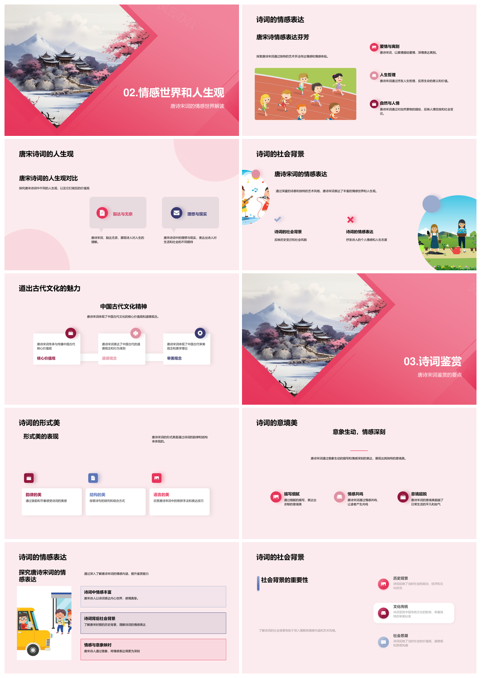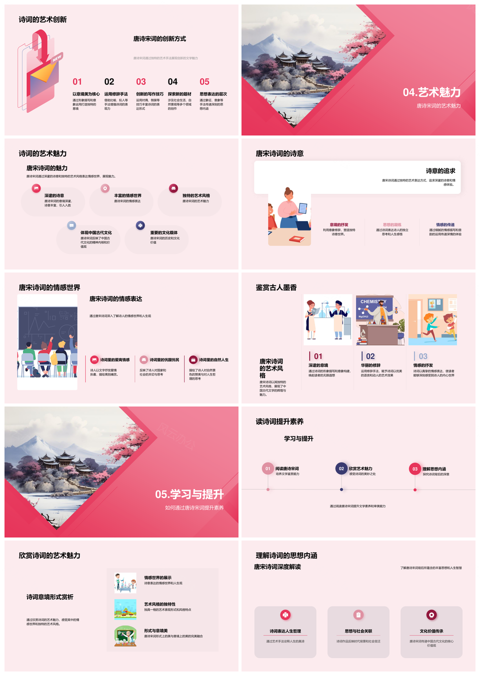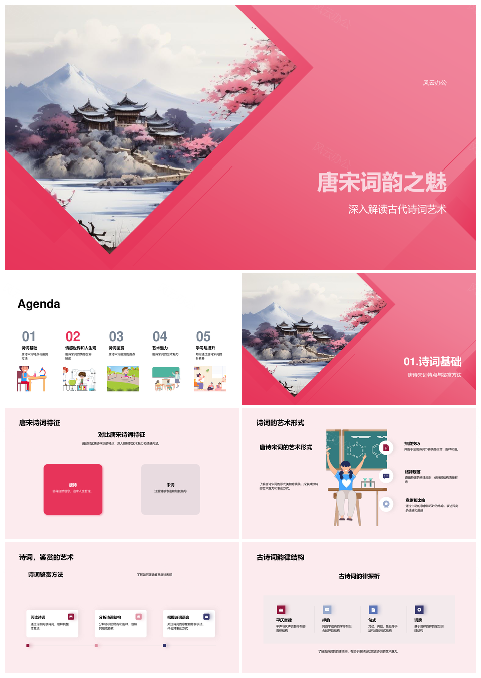 风云办公提供的唐宋词韵古卷艺境情思人生PPT模板,下载格式为pptx,一共29页,作品中文字及图均可以修改和编辑,图片更改请在作品中右键图片并更换,文字修改请直接点击文字进行修改。