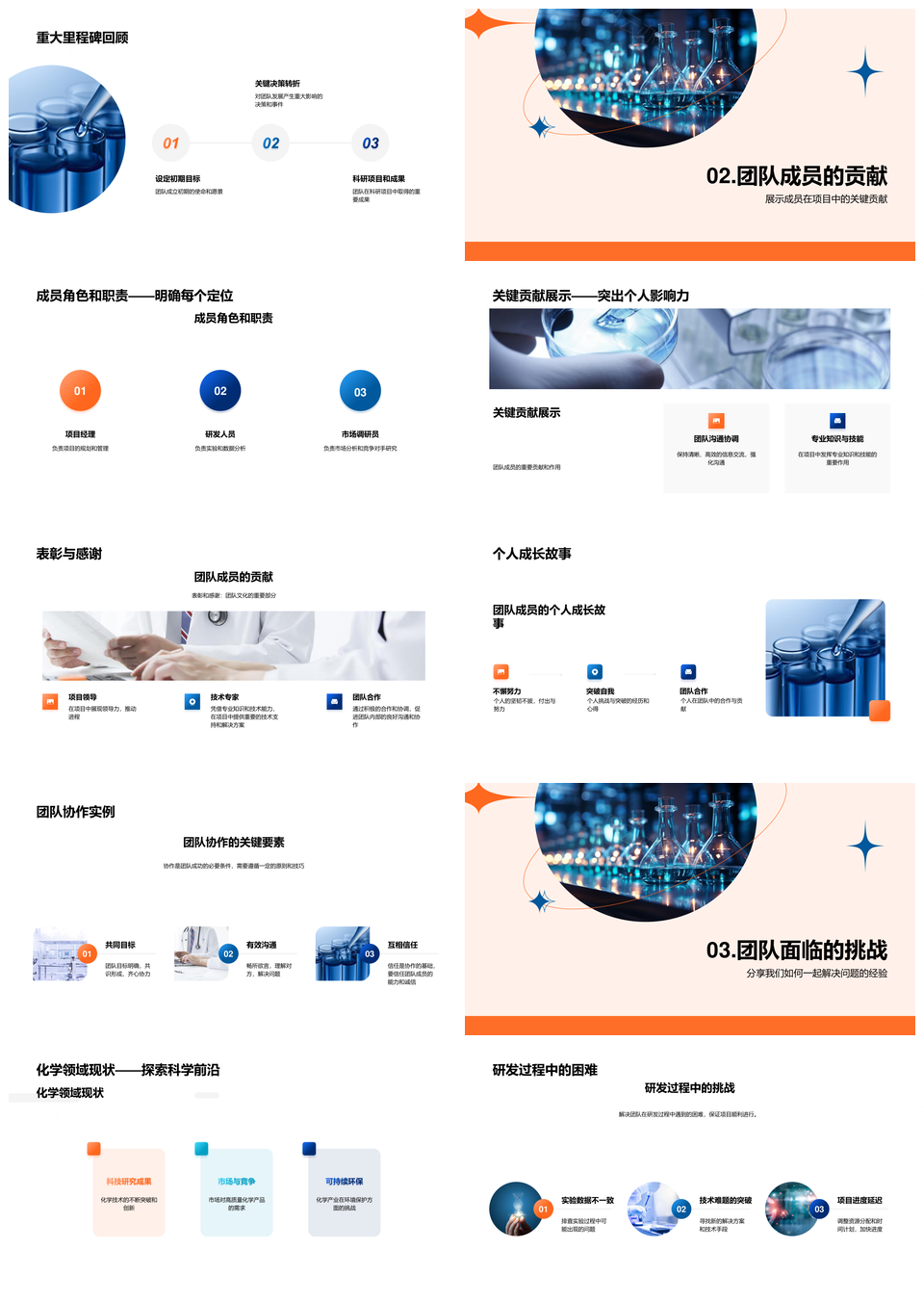 风云办公提供的化学创新团队克难协作共筑科研新程PPT模板,下载格式为pptx,一共33页,作品中文字及图均可以修改和编辑,图片更改请在作品中右键图片并更换,文字修改请直接点击文字进行修改。