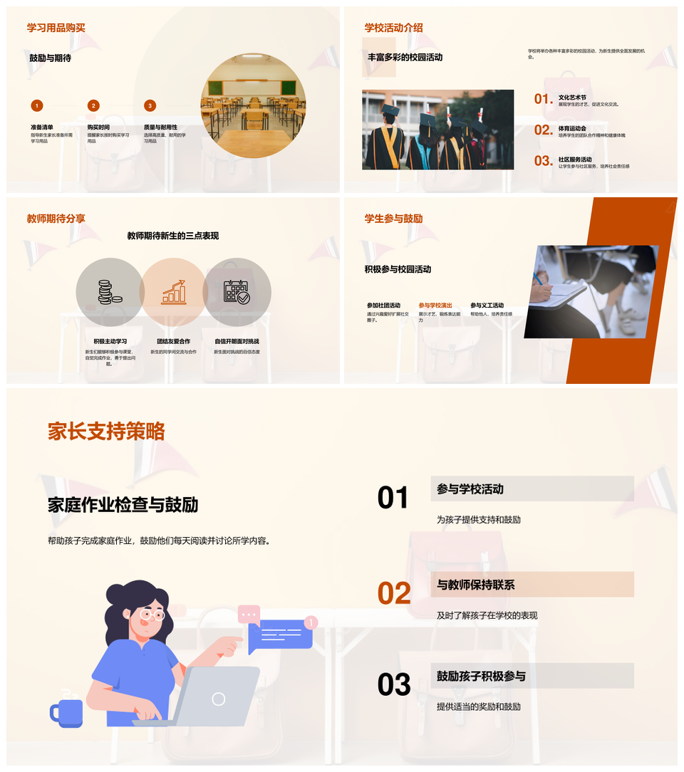 新生家长教育理念课程升学安全家校合作建筑指导PPT模板