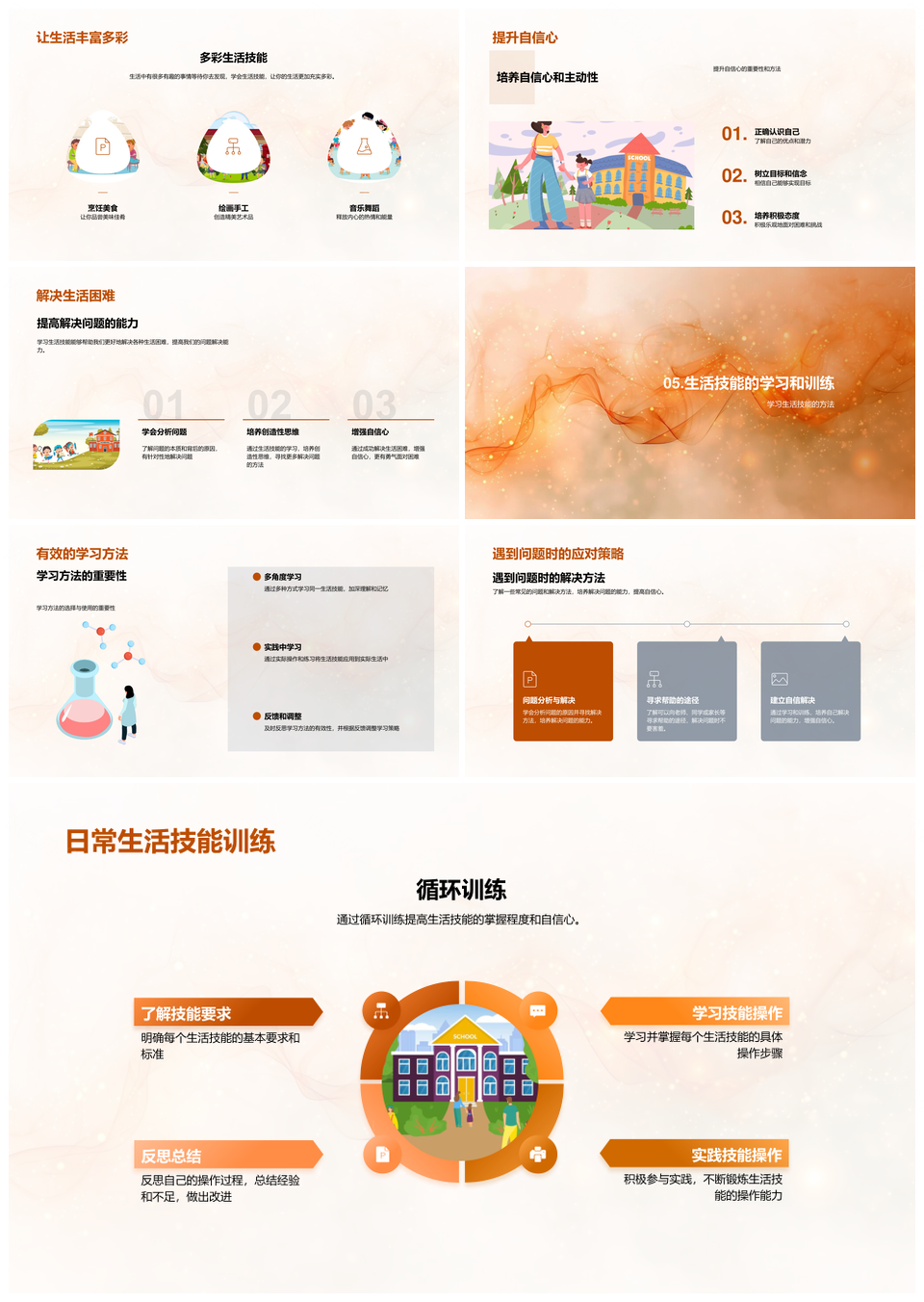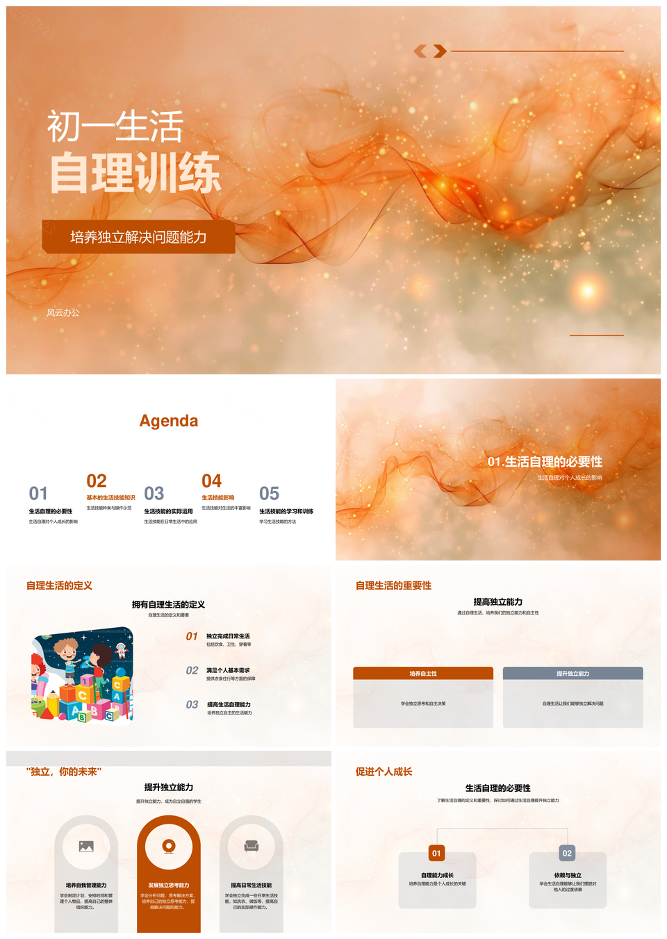 风云办公提供的初一生活自理独立能力成长训练PPT模板,下载格式为pptx,一共25页,作品中文字及图均可以修改和编辑,图片更改请在作品中右键图片并更换,文字修改请直接点击文字进行修改。