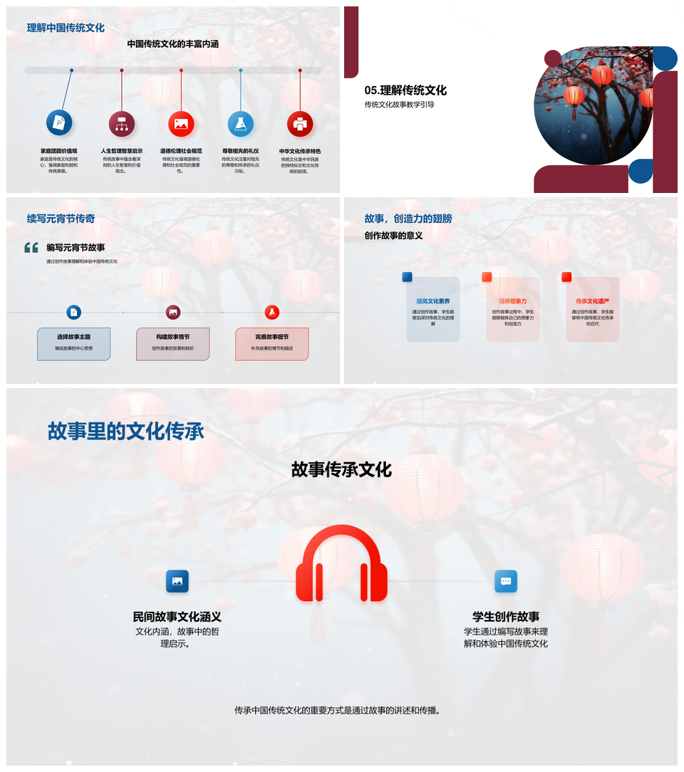 元宵节传统文化历史习俗灯笼民间故事解析PPT模板推荐