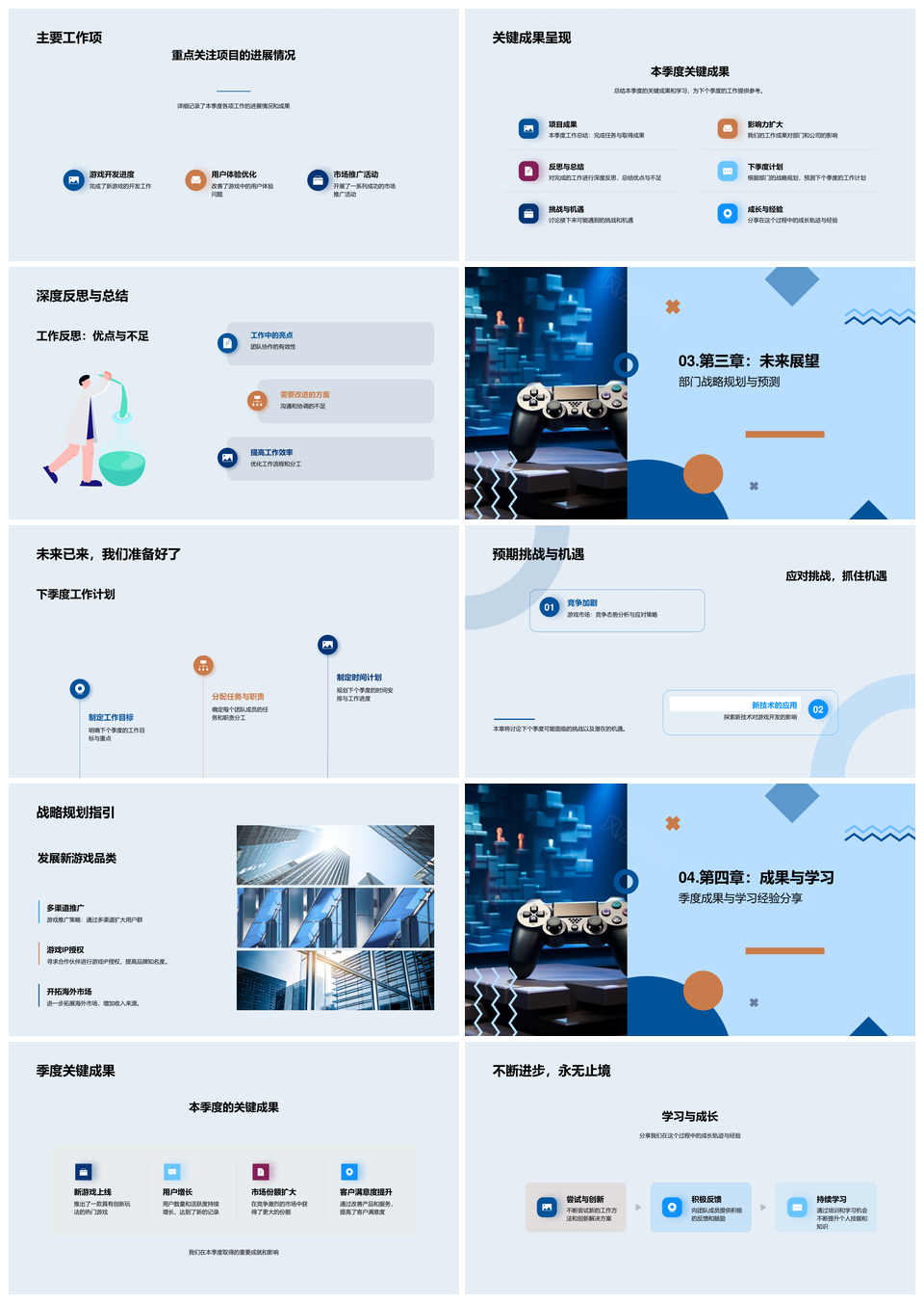 游戏部门季度锦鲤工作总结成果战略挑战机遇控制器展望经理PPT模板推荐