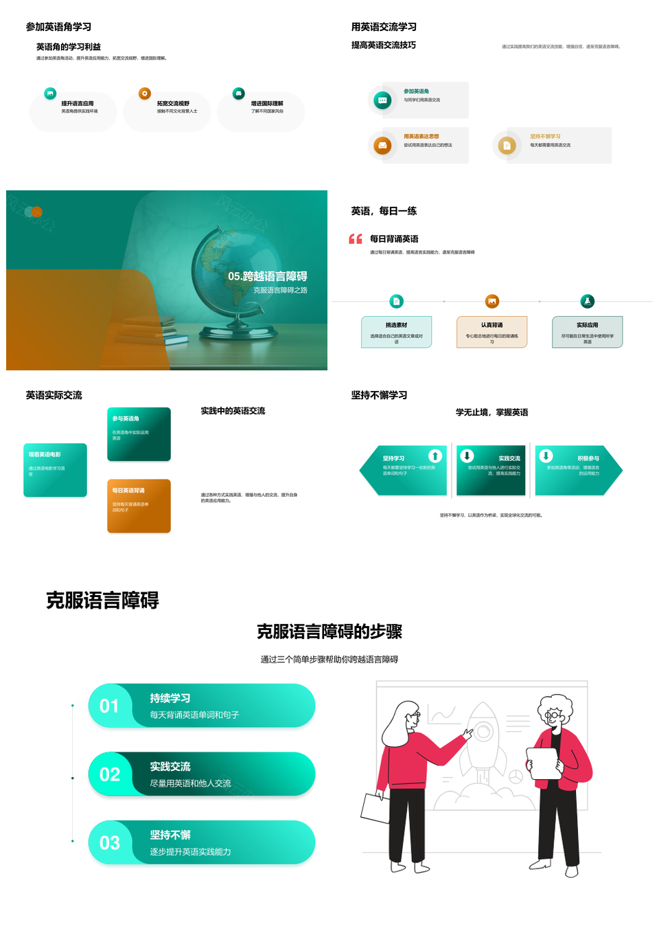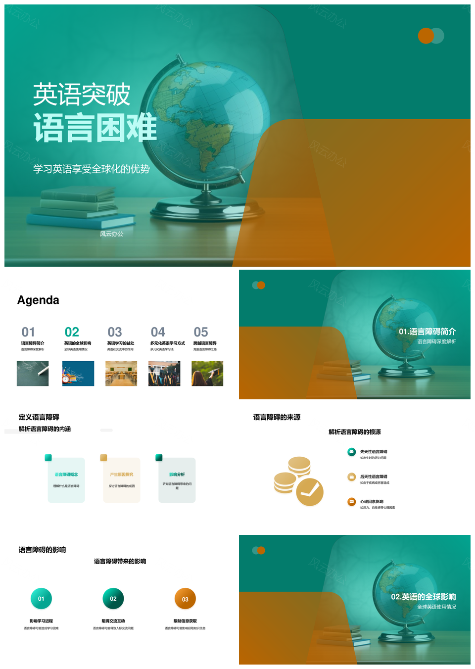 风云办公提供的英语跨越语言障碍推动全球交流PPT模板,下载格式为pptx,一共25页,作品中文字及图均可以修改和编辑,图片更改请在作品中右键图片并更换,文字修改请直接点击文字进行修改。