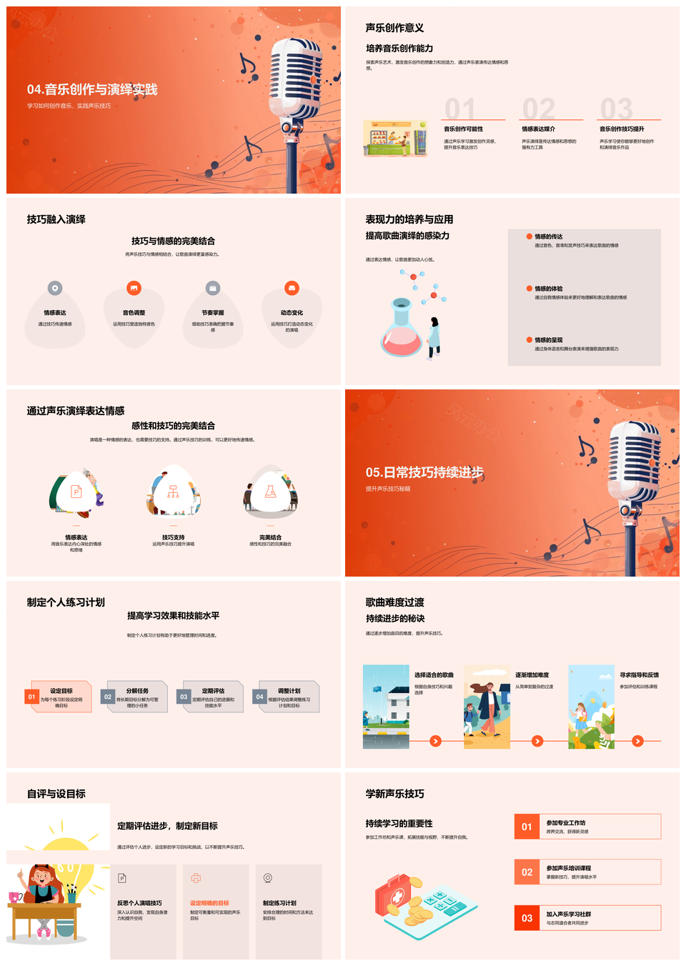 这是一张声乐艺术音乐表现技巧音准提升教学课程PPT模板,包含声乐艺术、音乐表现、技巧、音准、提升、教学课程等主题内容,也可用作声乐艺术音乐表现、艺术音乐表现技巧、音乐表现技巧音准、表现技巧音准提升、技巧音准提升教学、音准提升教学课程、声乐艺术音乐、艺术音乐表现、音乐表现技巧、表现技巧音准、技巧音准提升、音准提升教学、提升教学课程、声乐艺术、艺术音乐等PPT场景使用。 风云办公提供的声乐艺术音乐表现技巧音准提升教学课程PPT模板,下载格式为pptx,一共28页,作品中文字及图均可以修改和编辑,图片更改请在作品中右键图片并更换,文字修改请直接点击文字进行修改。